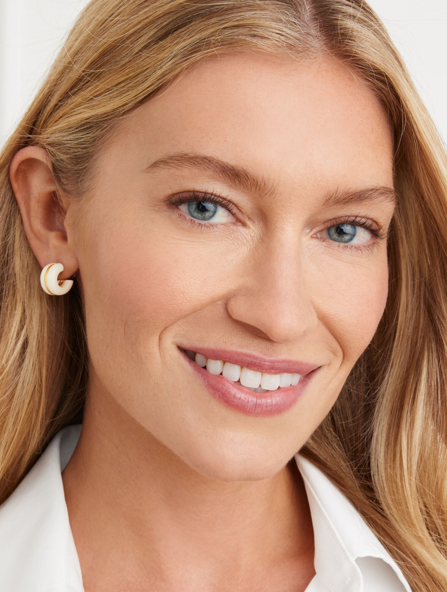 Accent your outfits with these effortless hoop earrings. Crafted from glossy resin in a small hoop silhouette.