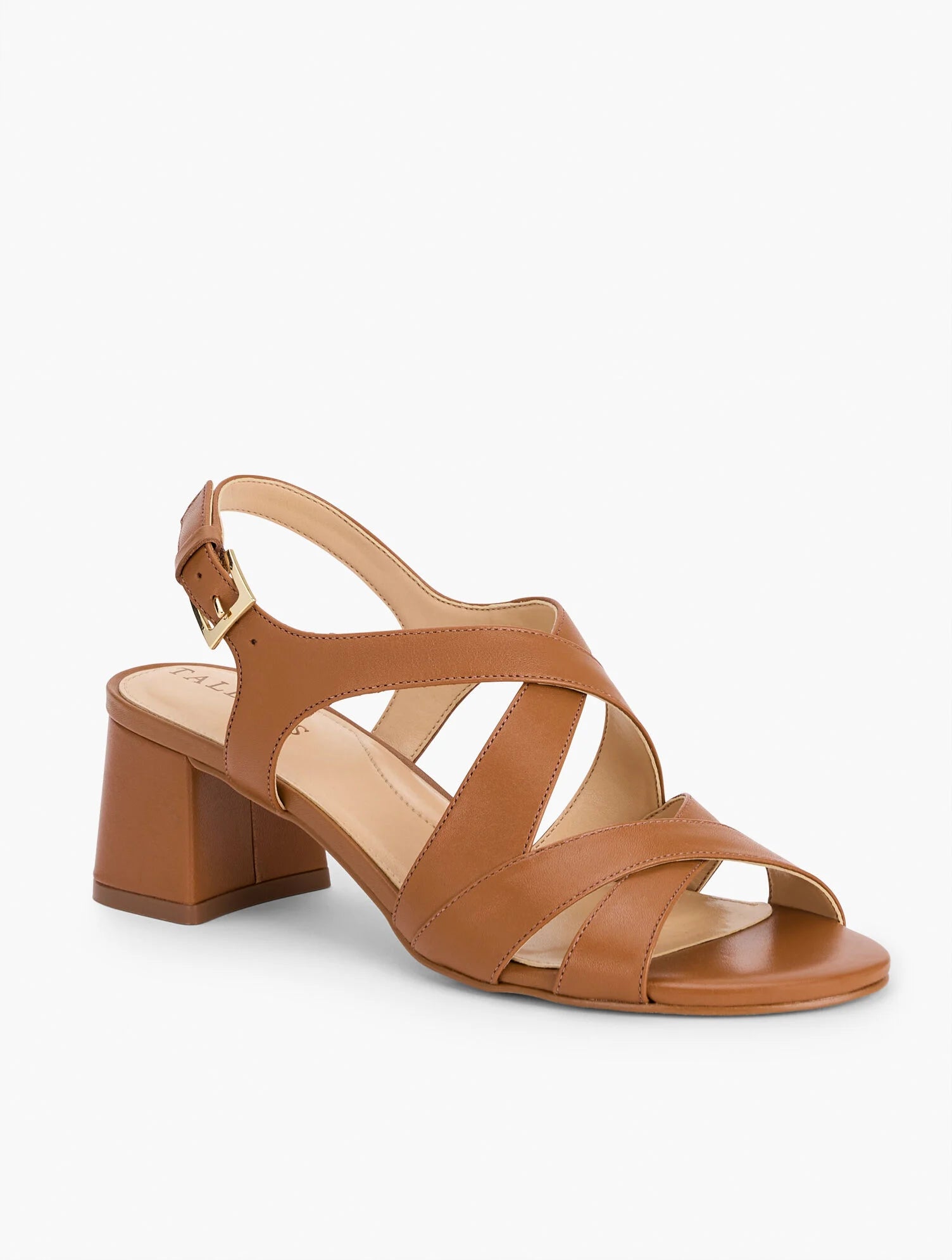 An elevated warm-weather staple. Crisscrossing straps add a modern touch to our leg-lengthening Millie sandals. Crafted from luxuriously soft nappa leather with a walkable block heel that's beyond comfortable. Enhanced with a memory foam footbed. Heel and arch padding for extra support. Flexible outsole for improved stability.