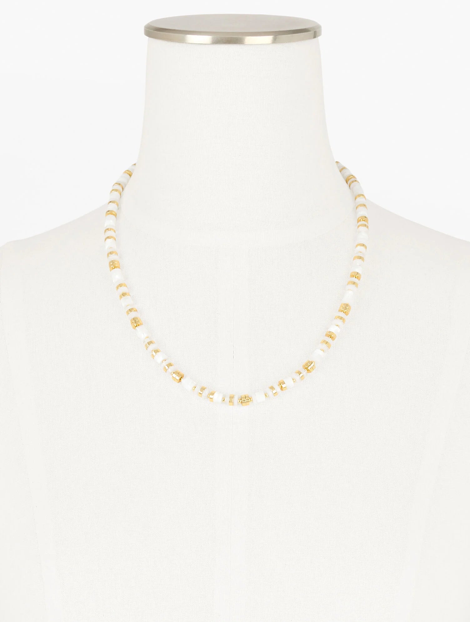 A stunning way to accent your look. Our polished necklace is crafted with a lush mix of gold-tone and white beads. It's the perfect finishing touch.