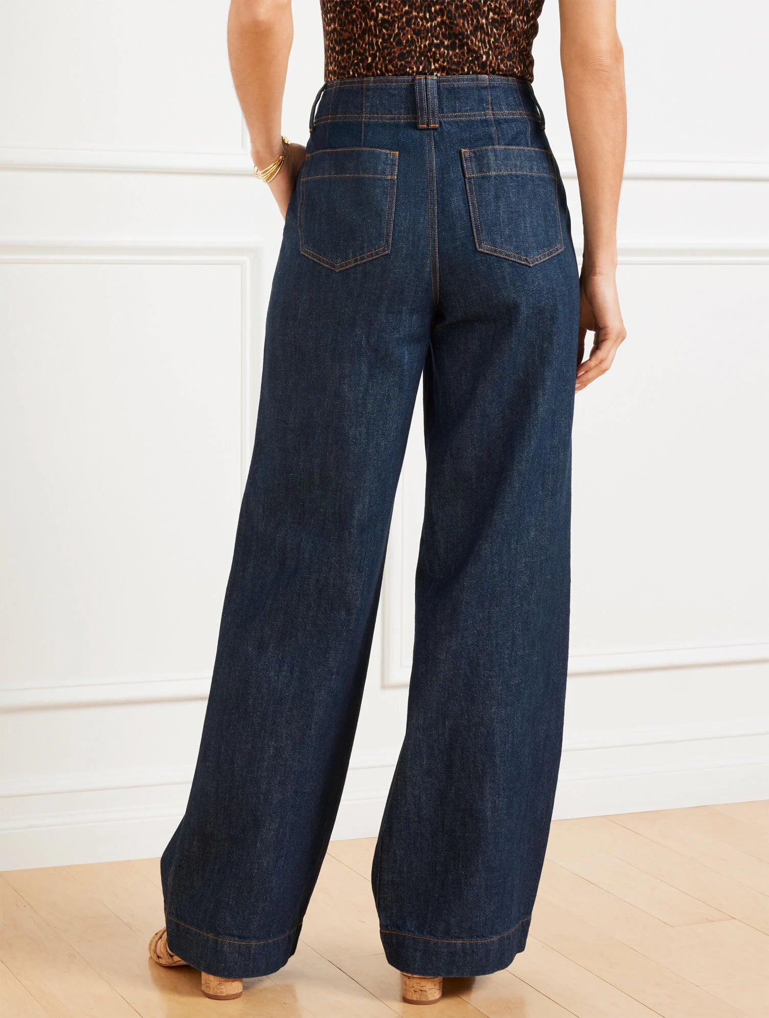 Effortless style is on the agenda with these polished wide leg jeans. Features a flattering high waist, slash front pockets and back patch pockets. Hemp blend that transitions easily from summer to early fall. Relaxed full length silhouette is perfect for those work-to-weekend looks.