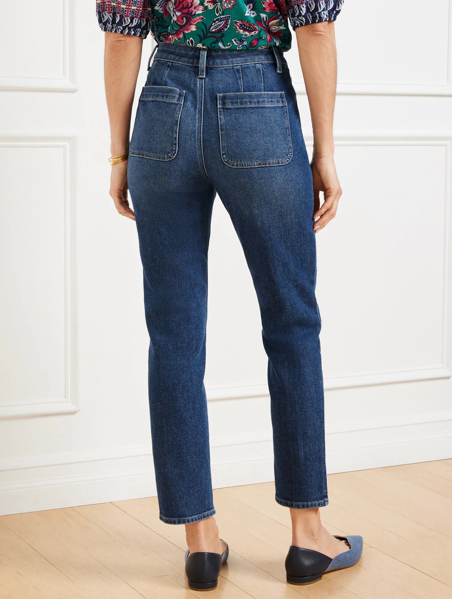 Our perfect slim cut jeans with a modern and comfortable straight ankle hem. Features a modern mid-rise waist, a hint of stretch for a flattering fit and Five-Pocket styling. A soon-to-be wardrobe favorite.
