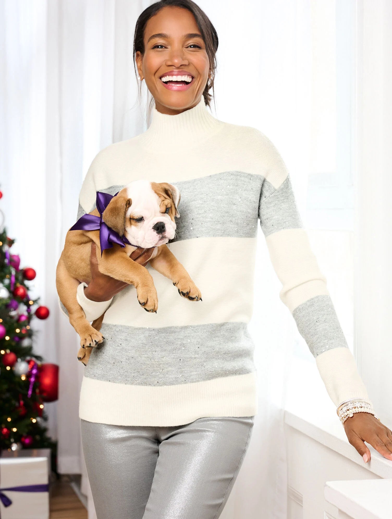 Wool Blend Turtleneck Sweater - Sequin Stripe