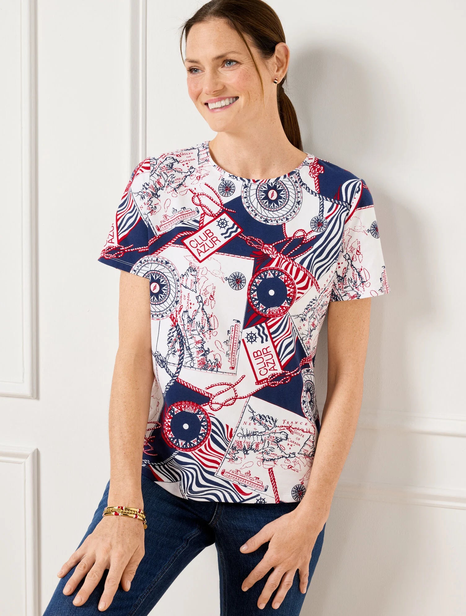 Our versatile, ready-for-anything short sleeve t-shirt in a Cote d’Azur print with a classic crewneck. Made from breathable cotton with a hint of stretch.
