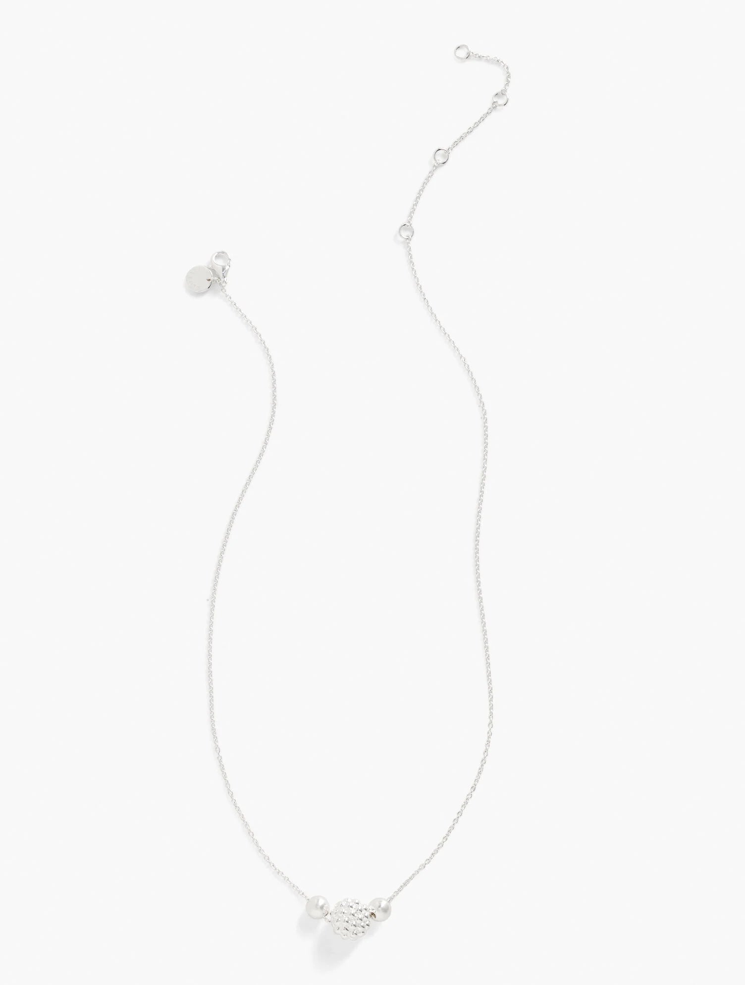A simple look that shimmers. Our delicate necklace is radiant with a cluster of sleek balls. Rendered in glossy sterling silver. It's oh-so-elegant.