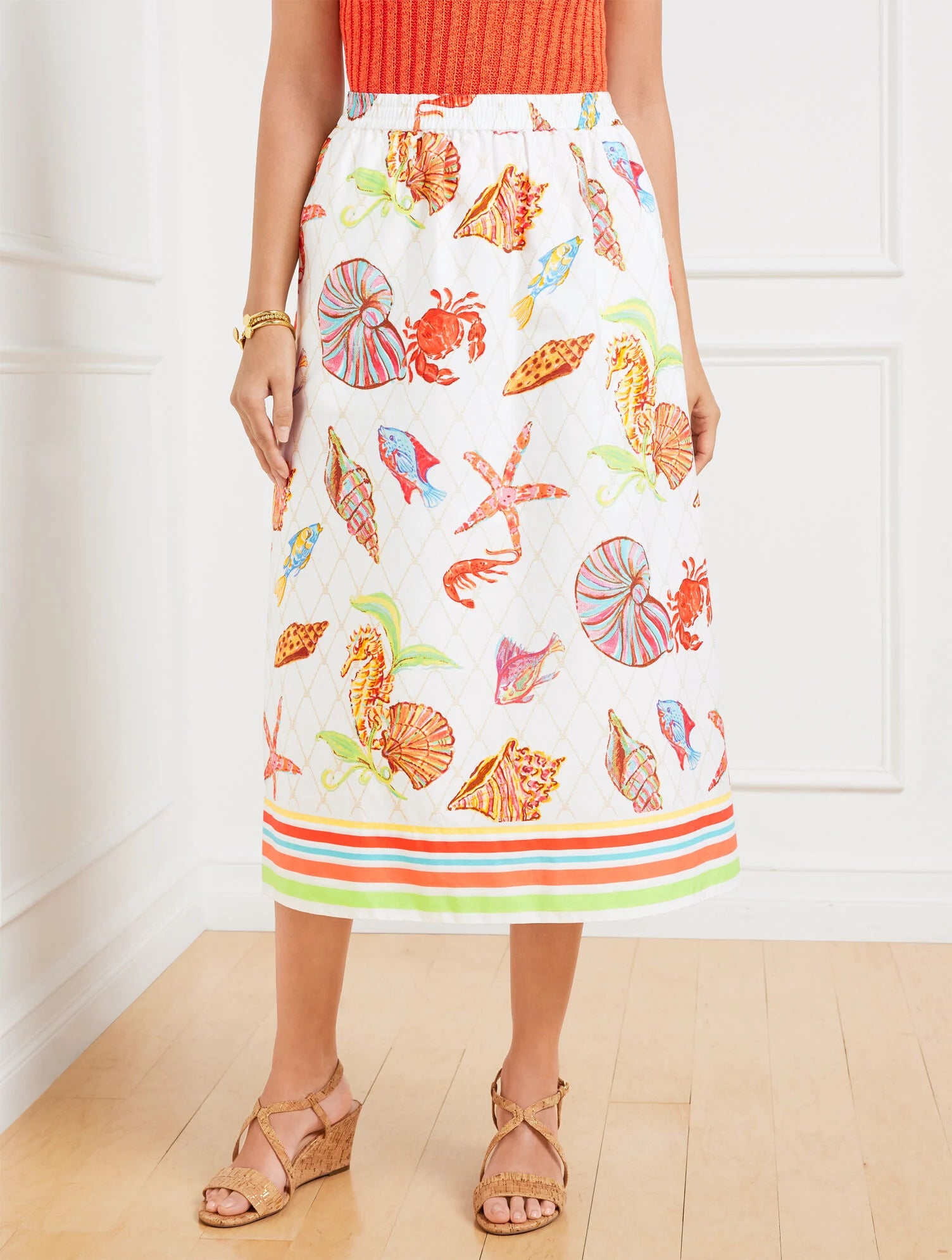 Modern Poplin Fit & Flare Midi Skirt - Underwater World