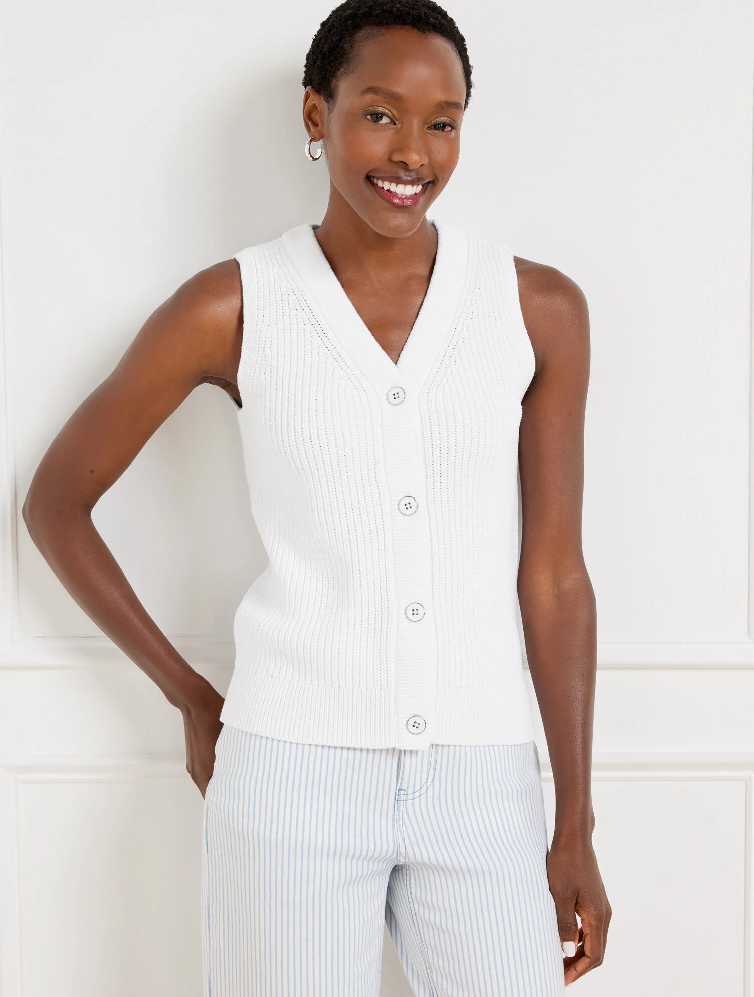 Elevate your wardrobe with this polished sweater vest. Crafted from a soft cotton blend with a flattering v-neck. A season-spanning favorite.