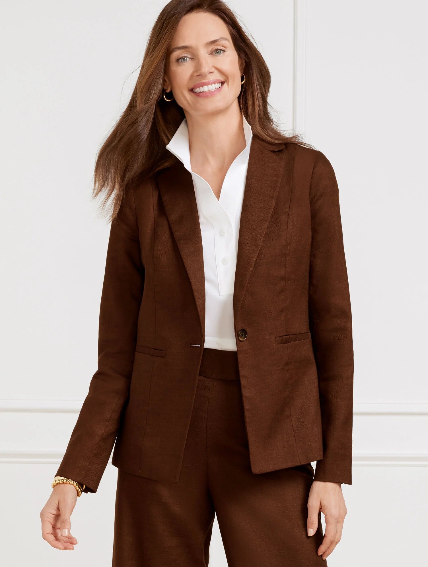 Our relaxed blazer is the epitome of luxe comfort. Crafted from breathable linen blend with chic welt pockets. Ready to elevate your office and weekend looks.