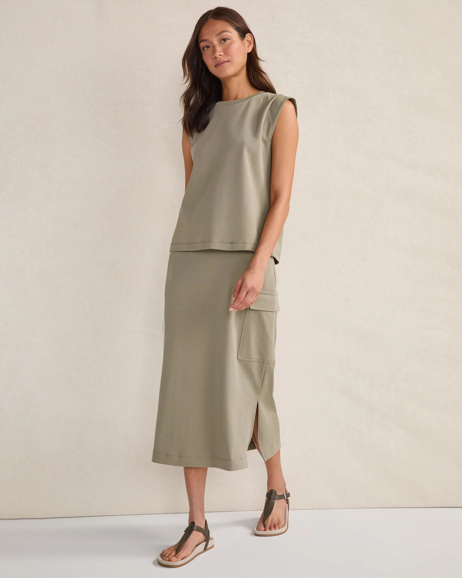 Our beloved 100% Organic Cotton Interlock, in a new, more substantial weight. Style this breathable and soft tee with the matching shorts or pants, and on chilly evenings, layer on your favorite sweater.