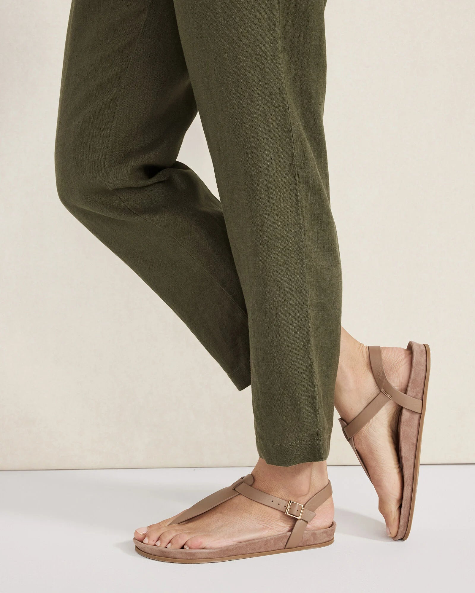 A modern upgrade to the classic thong sandal. With a mix of extra-soft suede and leather, these thoughtfully crafted sandals feature a delicate ankle strap and slightly cushioned footbed for all-day comfort.
