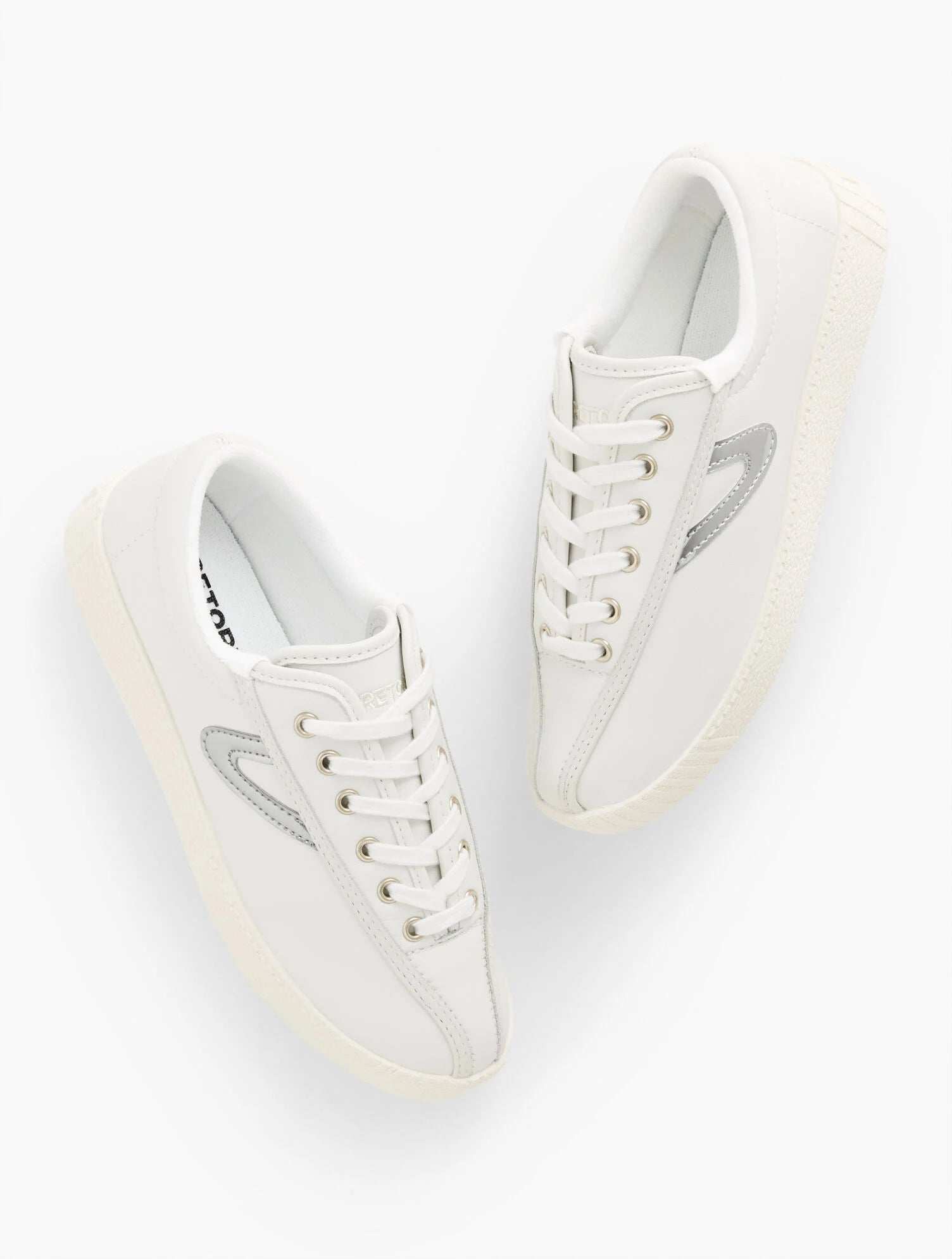 Versatile and timeless. Complete your sporty-chic outfits with these goes-with-everything lace up sneakers. Crafted from leather with comfortable cushioning.