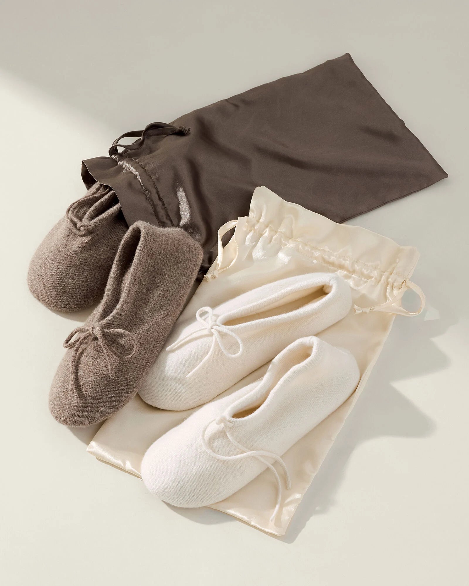 At home or on the go, these deliciously soft cashmere slippers will be the first things you reach for. With a structured, soft sole and a drawstring closure for maximum warmth.