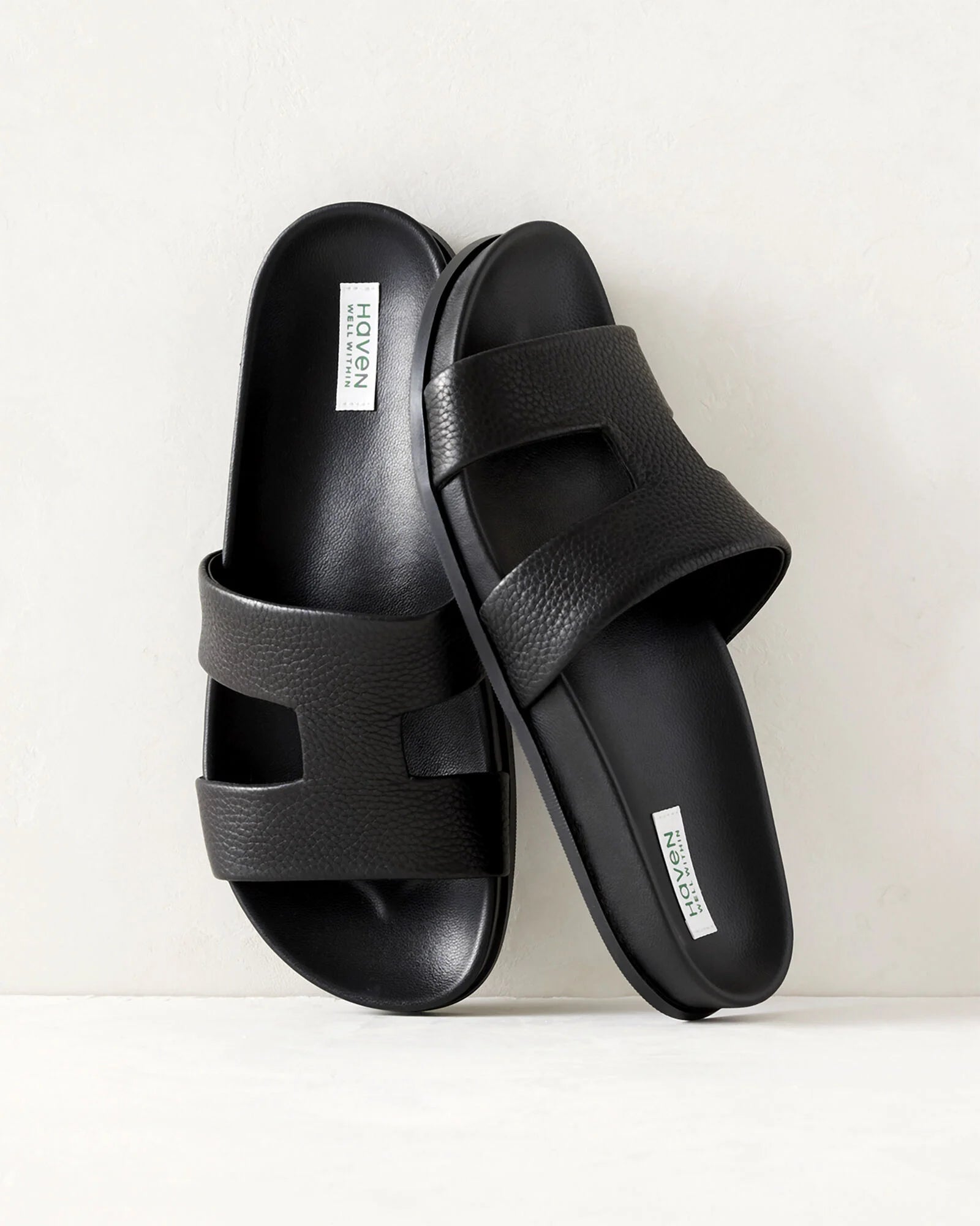 Step into summer ease. These chic sandal-slides go with just about everything. Slip them on to pad around on balmy days or to spend an afternoon on the patio.
