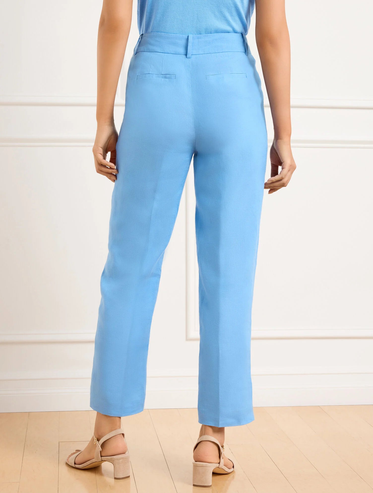 The epitome of luxe comfort. Live in linen this season with our sleek straight ankle pants. Detailed with modern front pleats and angled slip pockets. Breathable fabric drapes beautifully. Perfectly tailored for effortless summer style.