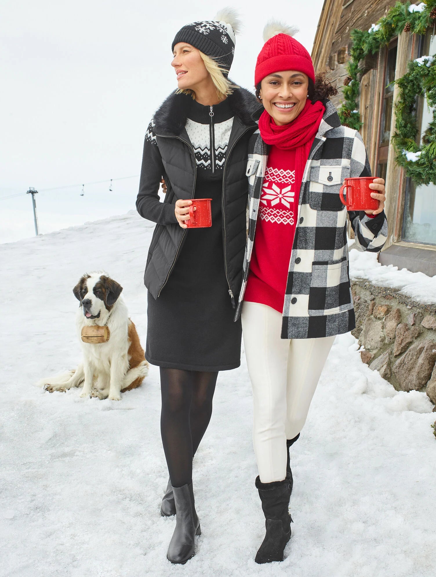 Nothing says cozy like an easy mockneck sweater with a striking Fair Isle pattern. Made from a luxuriously soft viscose and Thermolite® blend.