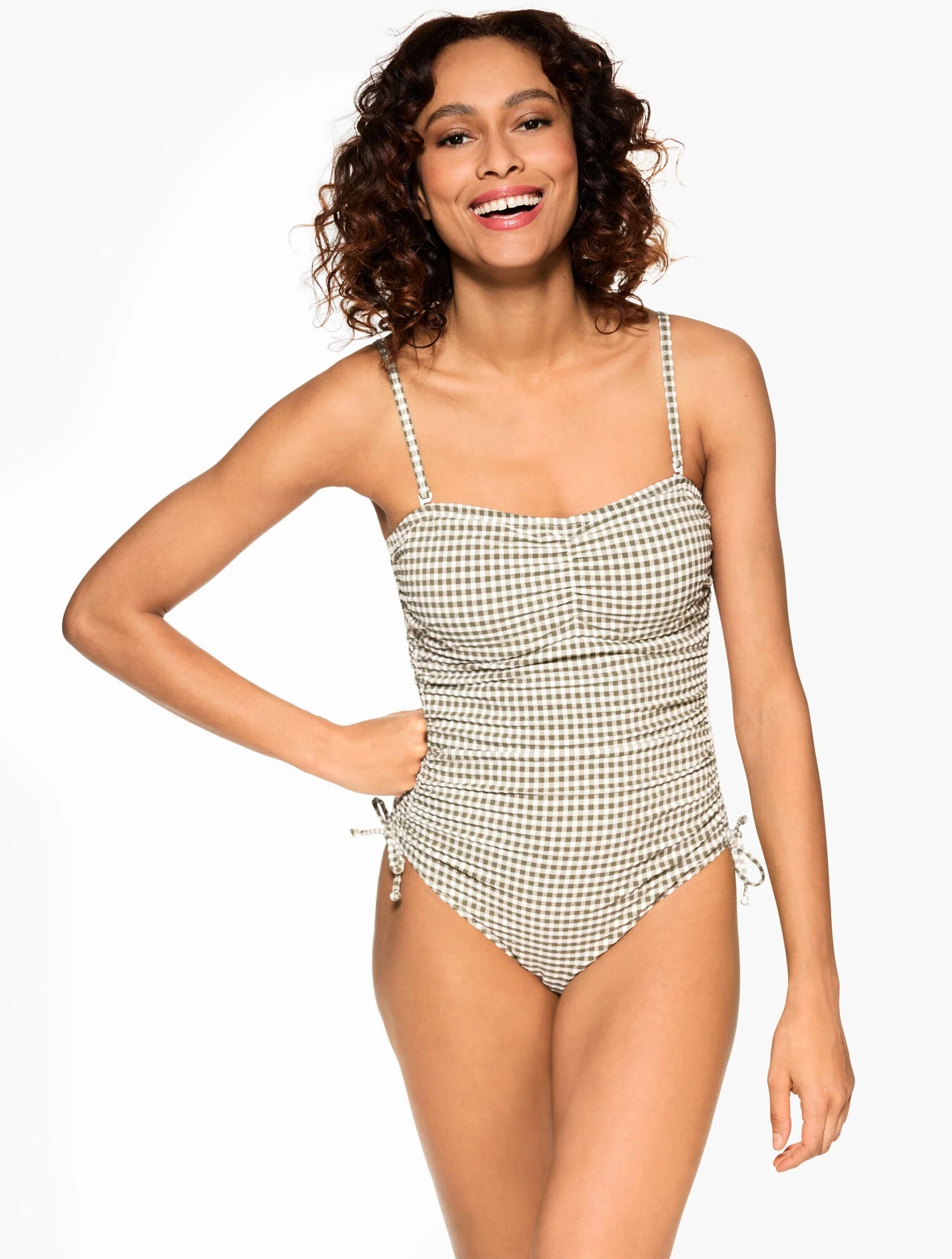 Sun Ocean Sand Ruched Side One Piece - Gingham