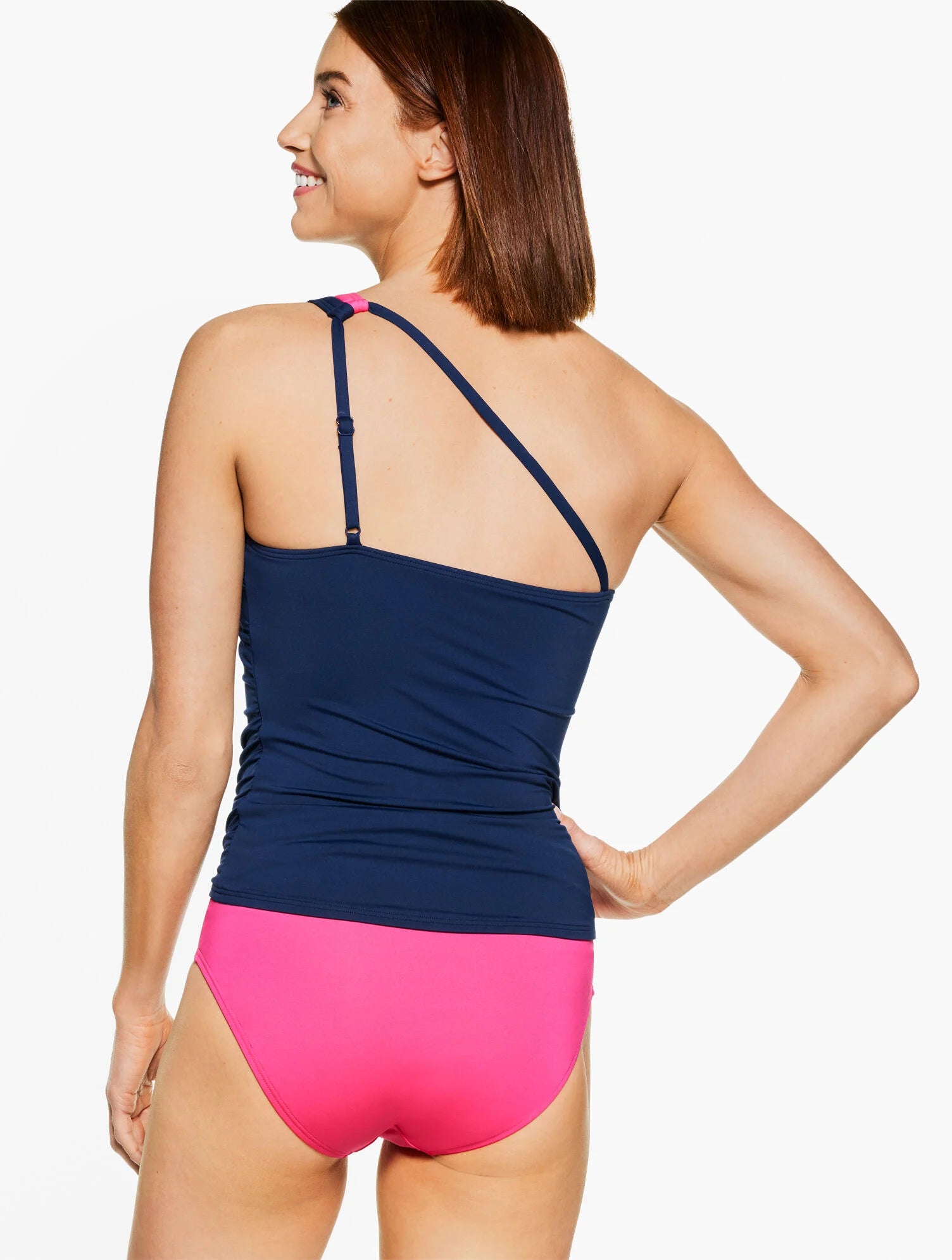 A playful, vacation-ready tankini from Sun Ocean Sand. Designed in a one-shoulder silhouette with of-the-moment cutout details. Light control for confident coverage. Crafted with SunWell UPF 50+ protection.