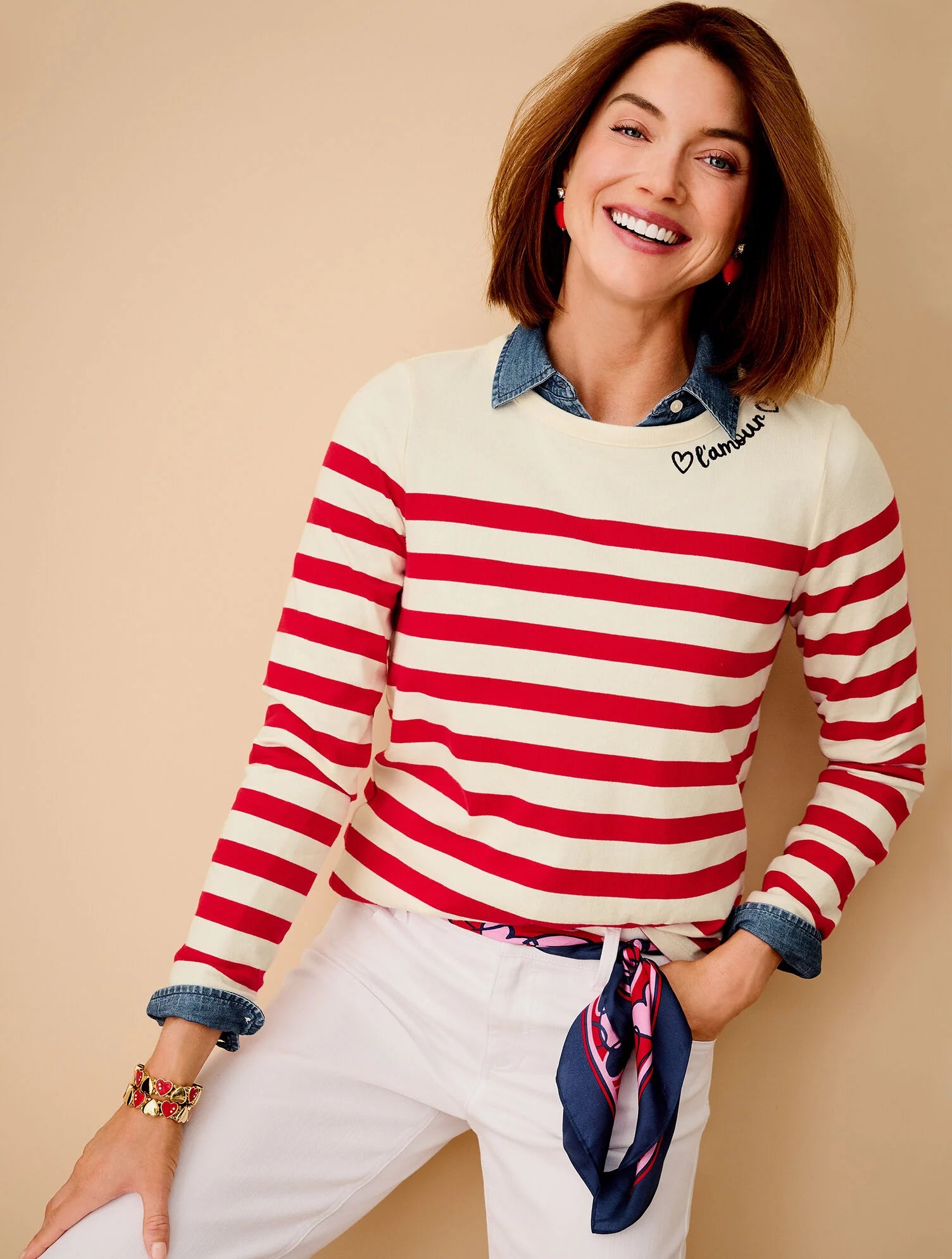 Carry a little amour everywhere you go in this comfy crewneck t-shirt. Crafted from heavenly soft cotton with allover stripes.