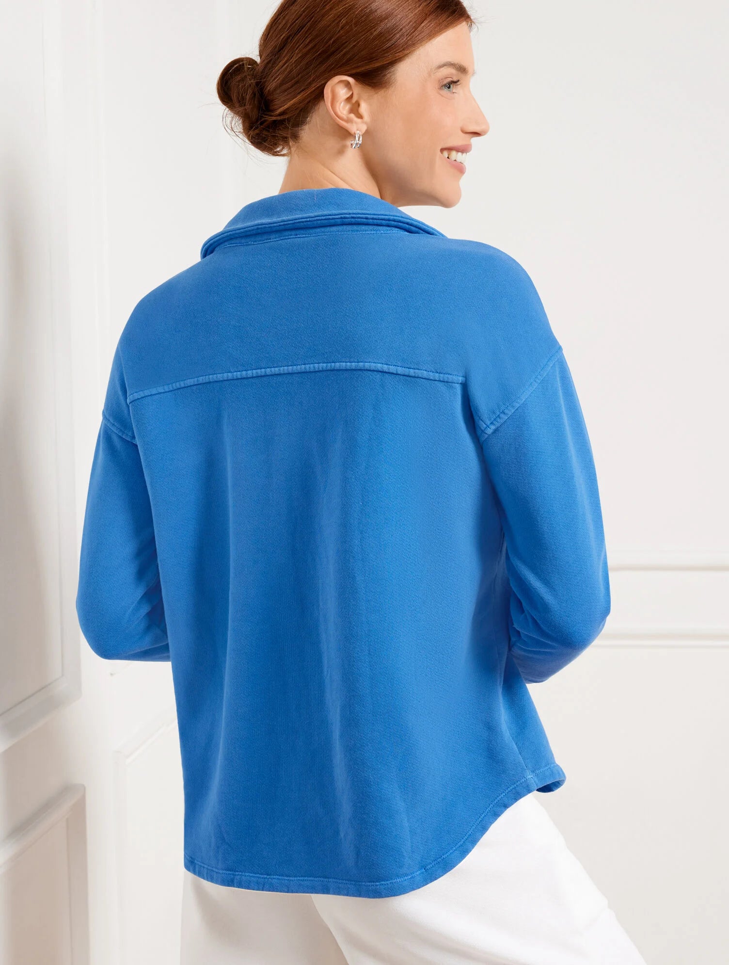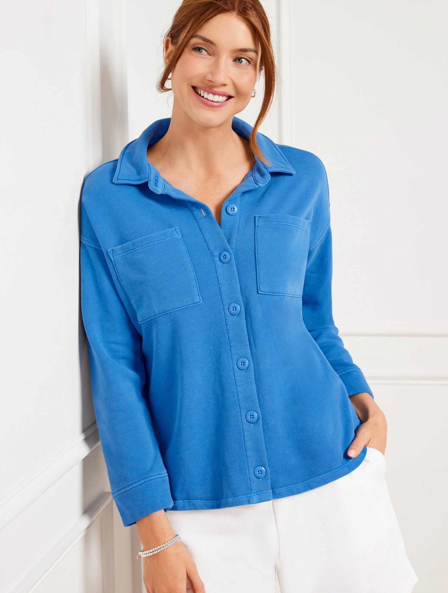 Our versatile beach terry shirt jacket is just-right for chilly mornings and nights. Made from addictively soft and cozy garment-dyed yarns to keep you comfortable all day long. Detailed with chest pockets. Perfectly packable–just right for everyday and travel. Crafted for your summertime plans.