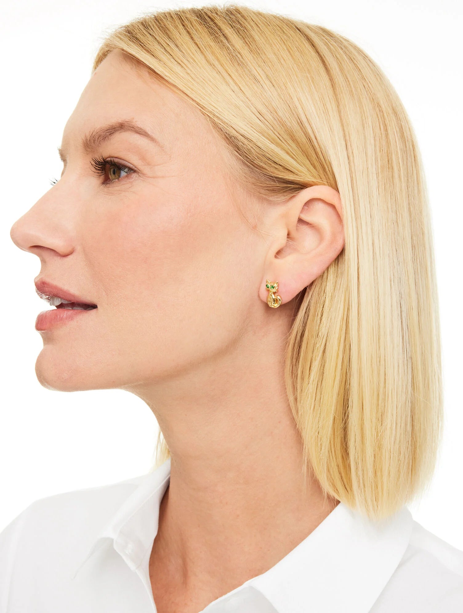 No tricks. All treats! Attract endless compliments with these perfect-for-fall stud earrings. Crafted in a Halloween-inspired design. Set of three features a charming witch hat, a crystal pavé fireball and an adorable cat.