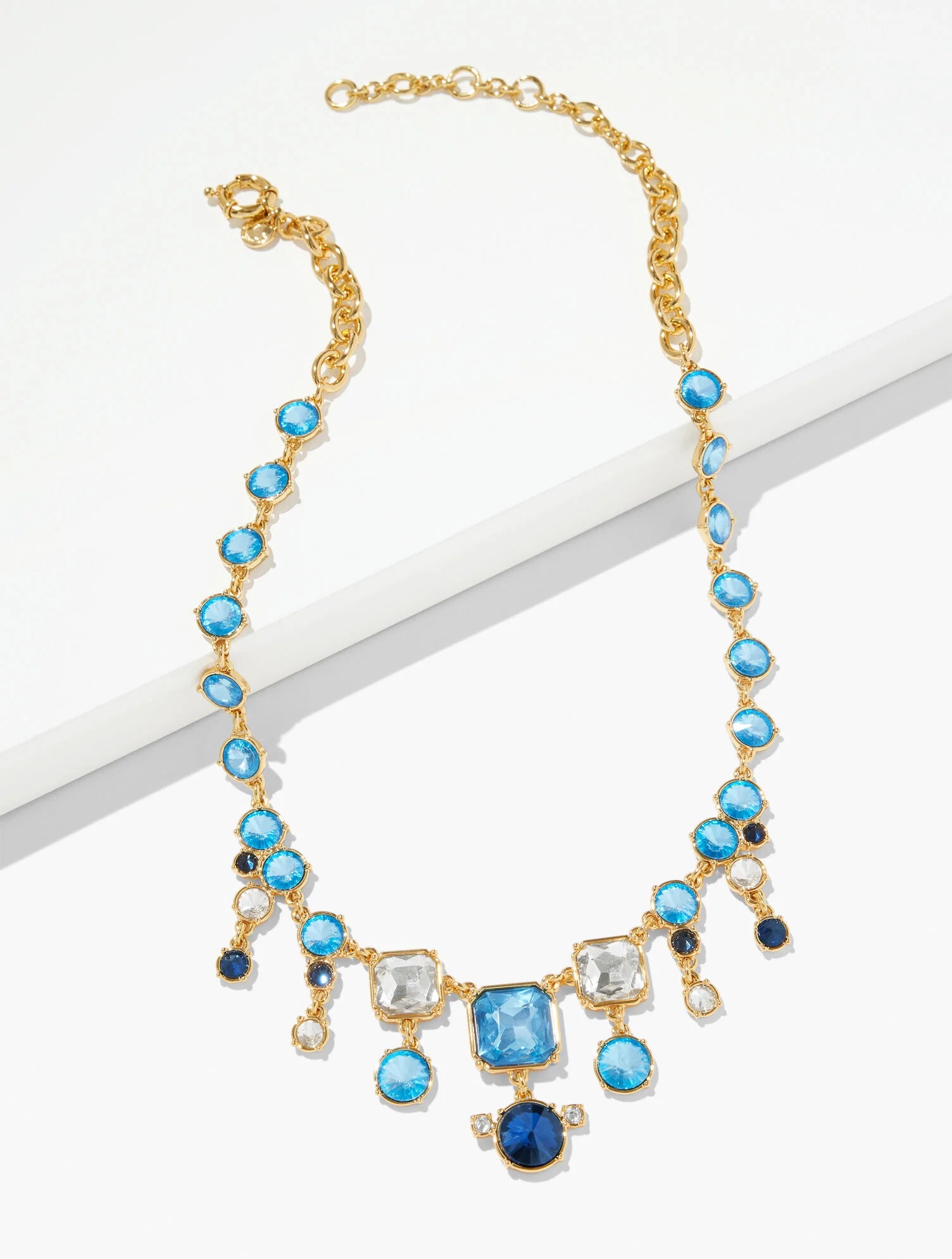 Make a glamorous statement with the beautifully shaped crystals on this collar-length necklace. Crafted in gorgeous blue hues. A luxurious add-on to your day or evening look.