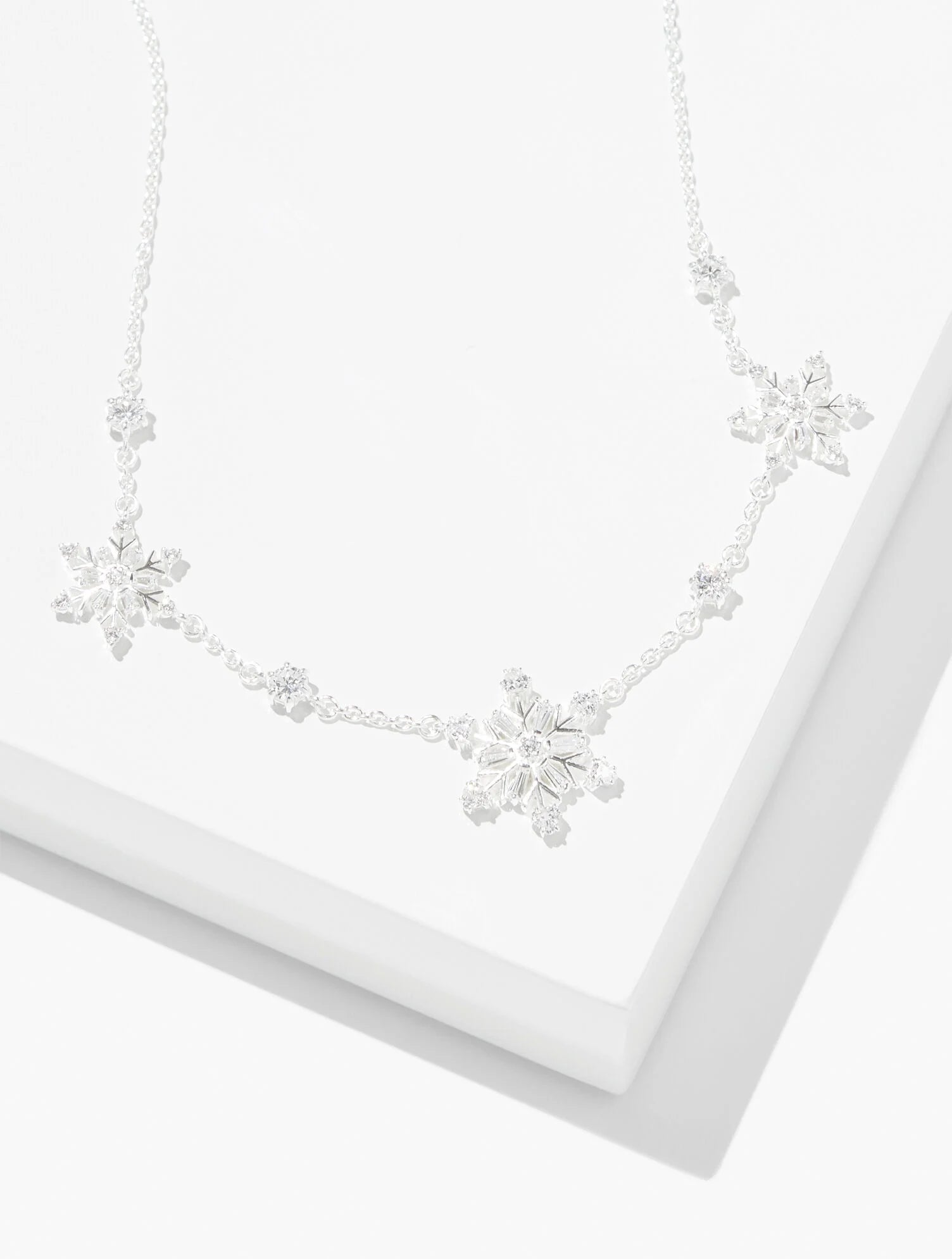 A medley of crystals illuminates this dainty pendant necklace. Rendered in glossy sterling silver with a stunning snow flurry pendant. In the collar-length you love. It's oh-so-elegant. Get one for you and one as a gift!