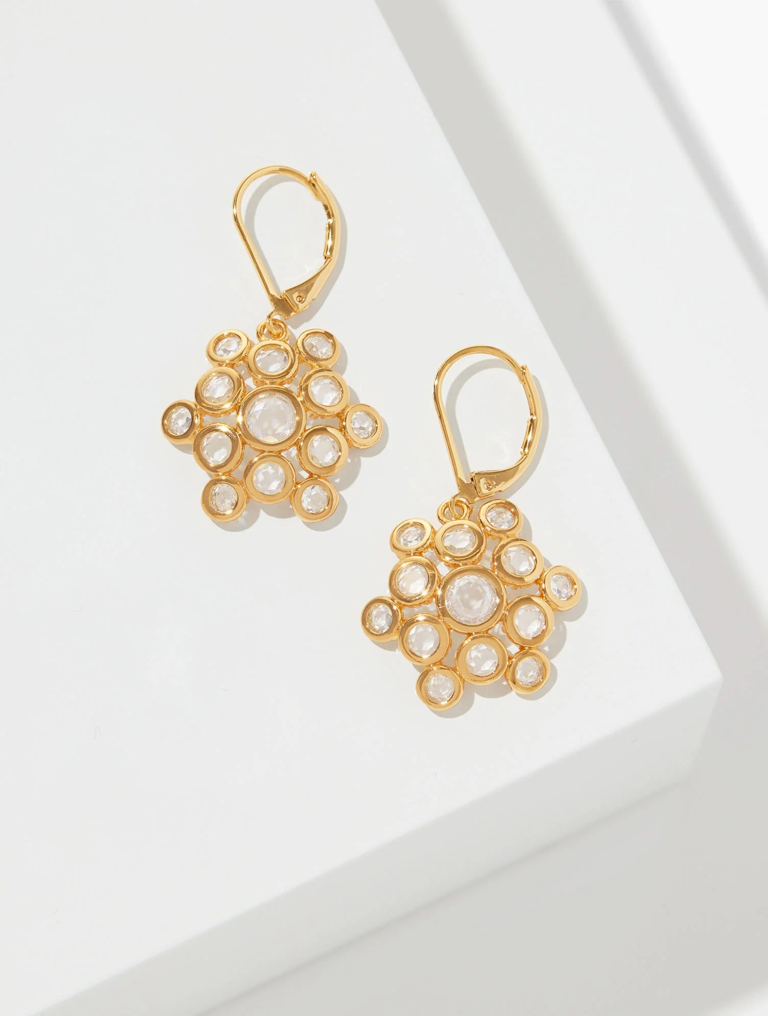 Bring bold shine and sculptural bloom to your outfits with these shimmering drop earrings. Detailed with delicate rosette drops that sway elegantly.
