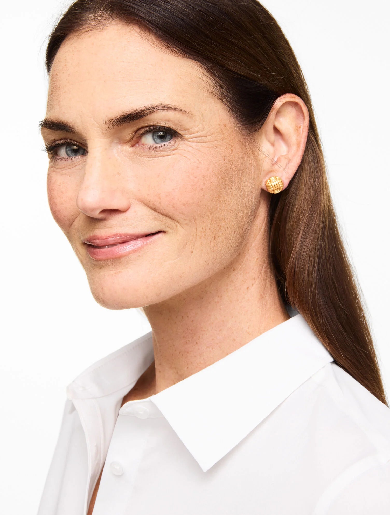 Our statement-making stud earrings in a striking basketweave design. Just sweep your hair up to show them off.
