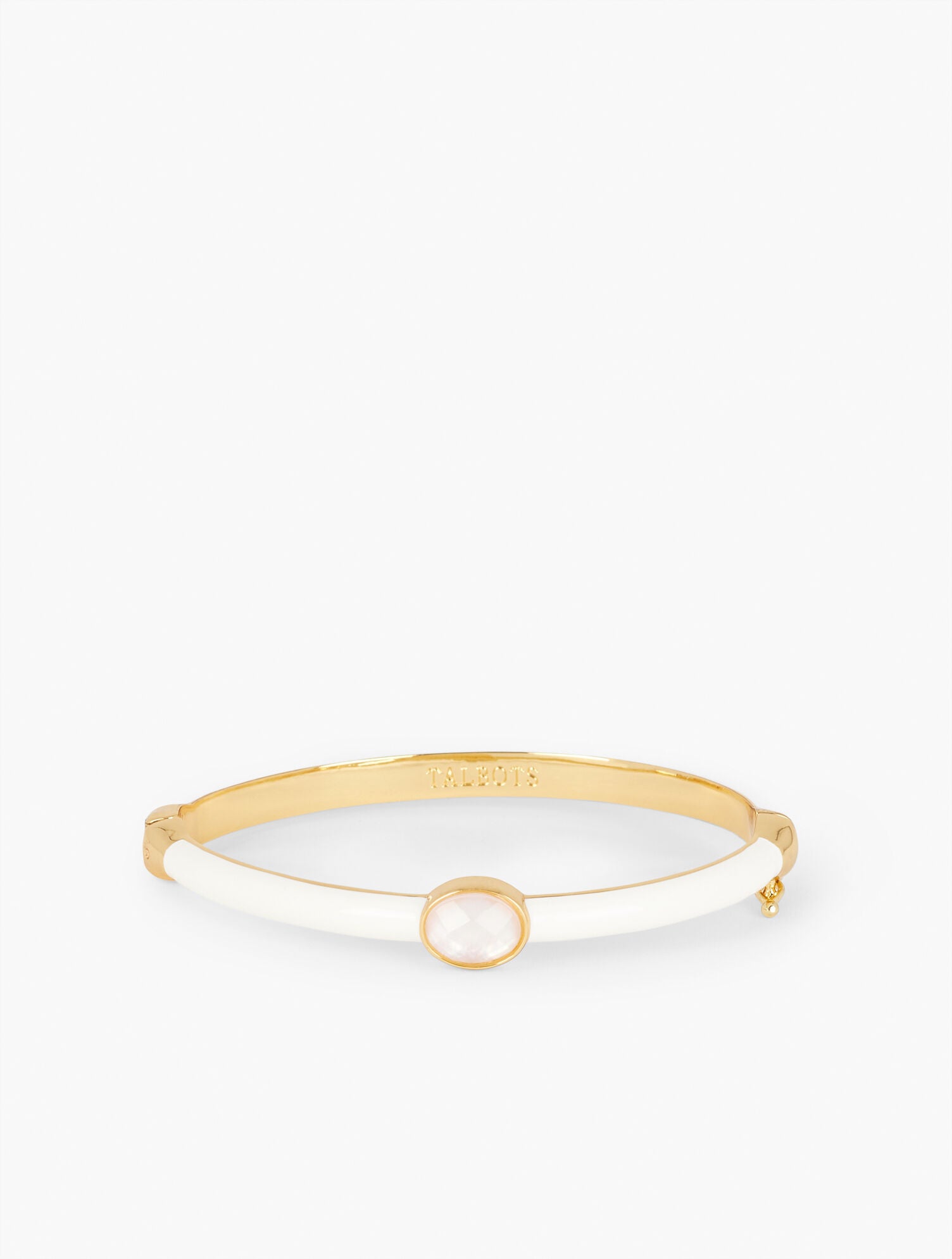 A bold enamel stone makes a statement on this chic hinged bracelet. Crafted from polished gold. Perfect for adding a little color to your look.