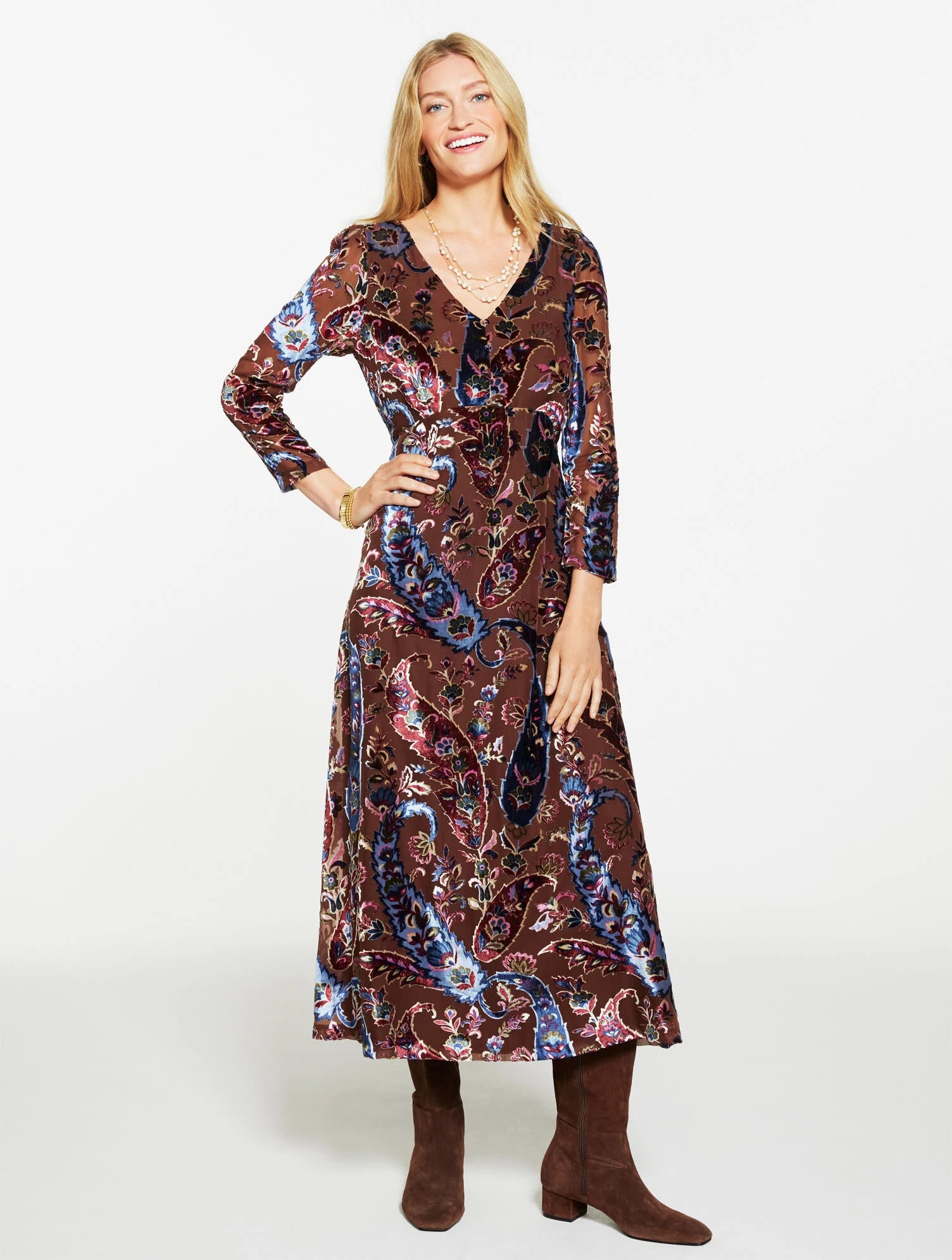 Burnout Velvet Fit & Flare Dress - Floral Paisley