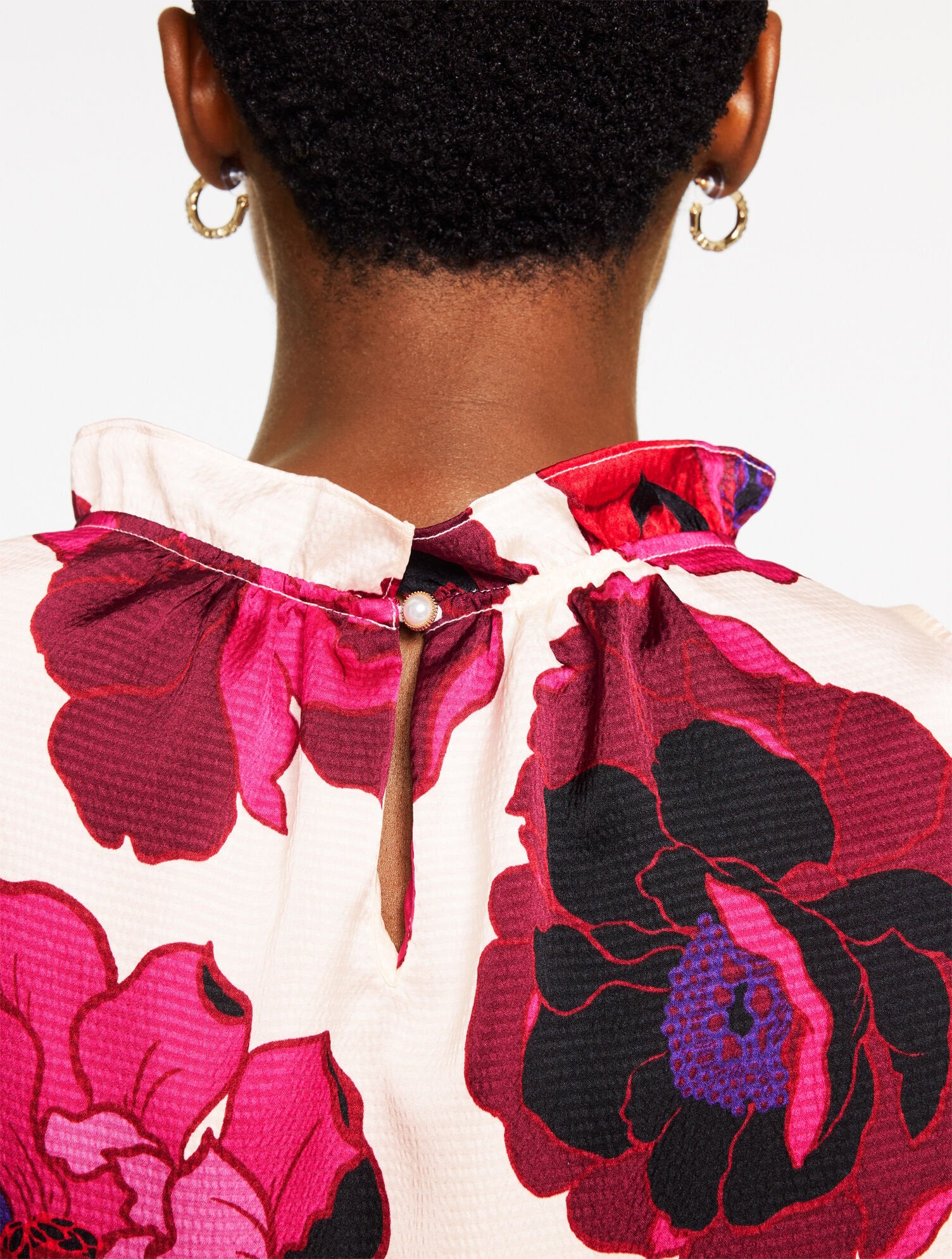 Add luxe texture to your wardrobe this season with this halter neck top. Crafted from hammered satin in a blooming floral print. Detailed with a buttoned keyhole opening.