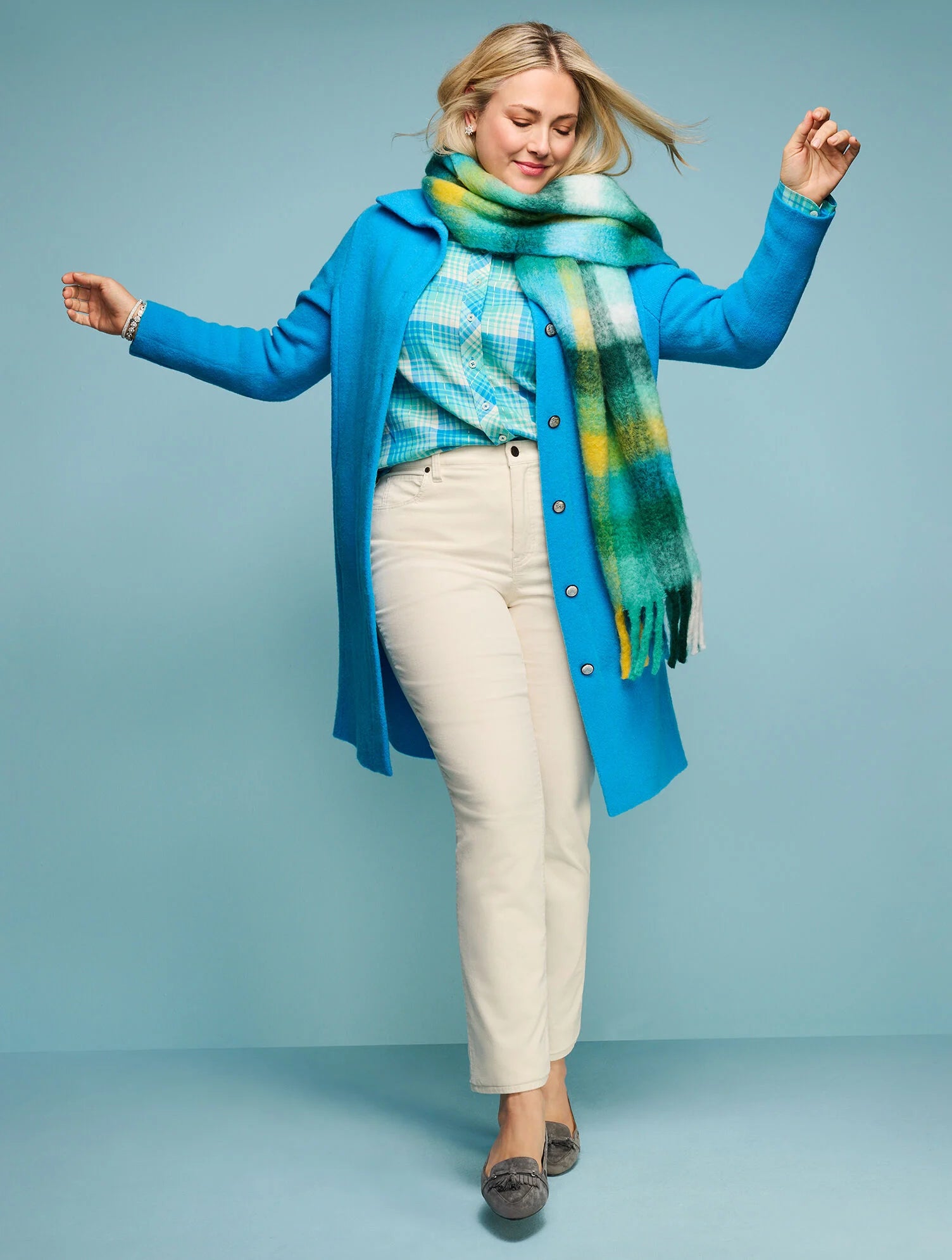 Our classic button front shirt. Made from breathable cotton flannel. In an ornament plaid with shimmering metallic details. Tucked in or out, unbuttoned or buttoned.
