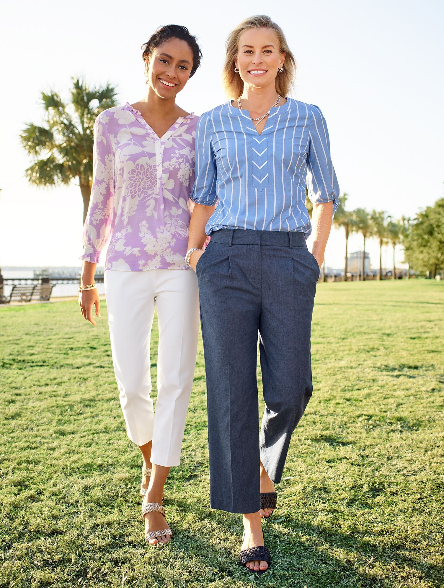 Perfect for balmy days. In a fancy stripe print. Just-right length. With pretty tie details at the sleeves. Simply perfection.