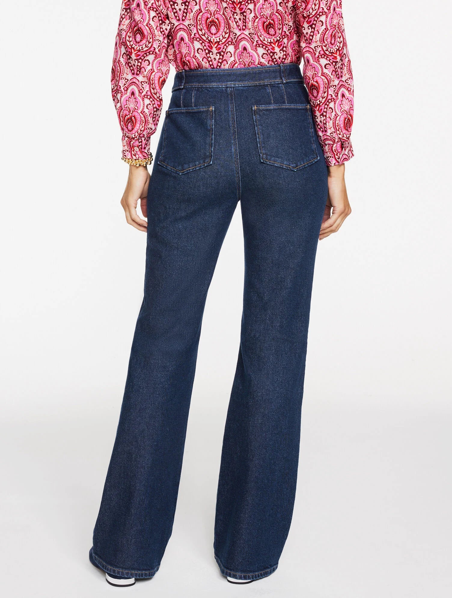 A figure-boosting high waist and fabulous flare leg make these jeans a closet must-have. Crafted with gemstone button side tabs for the perfect fit. The effortless pair you've been looking for. Perfect for the office and beyond.