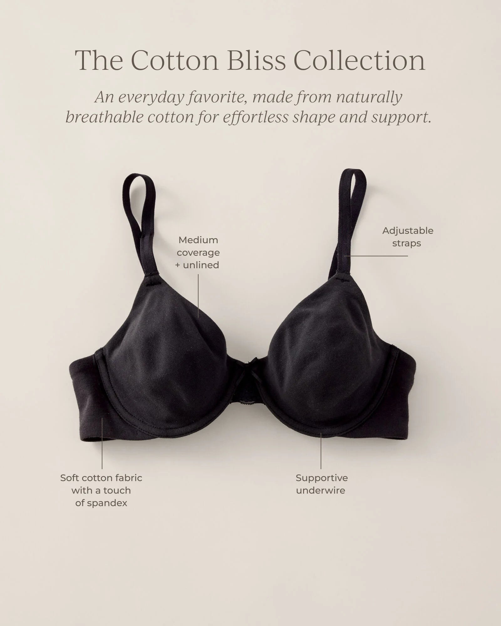 A breath of fresh air. This medium-coverage bra is made from soft, breathable cotton with a touch of spandex for just-right stretch and comfort. Designed with an underwire for effortless shape and support.
