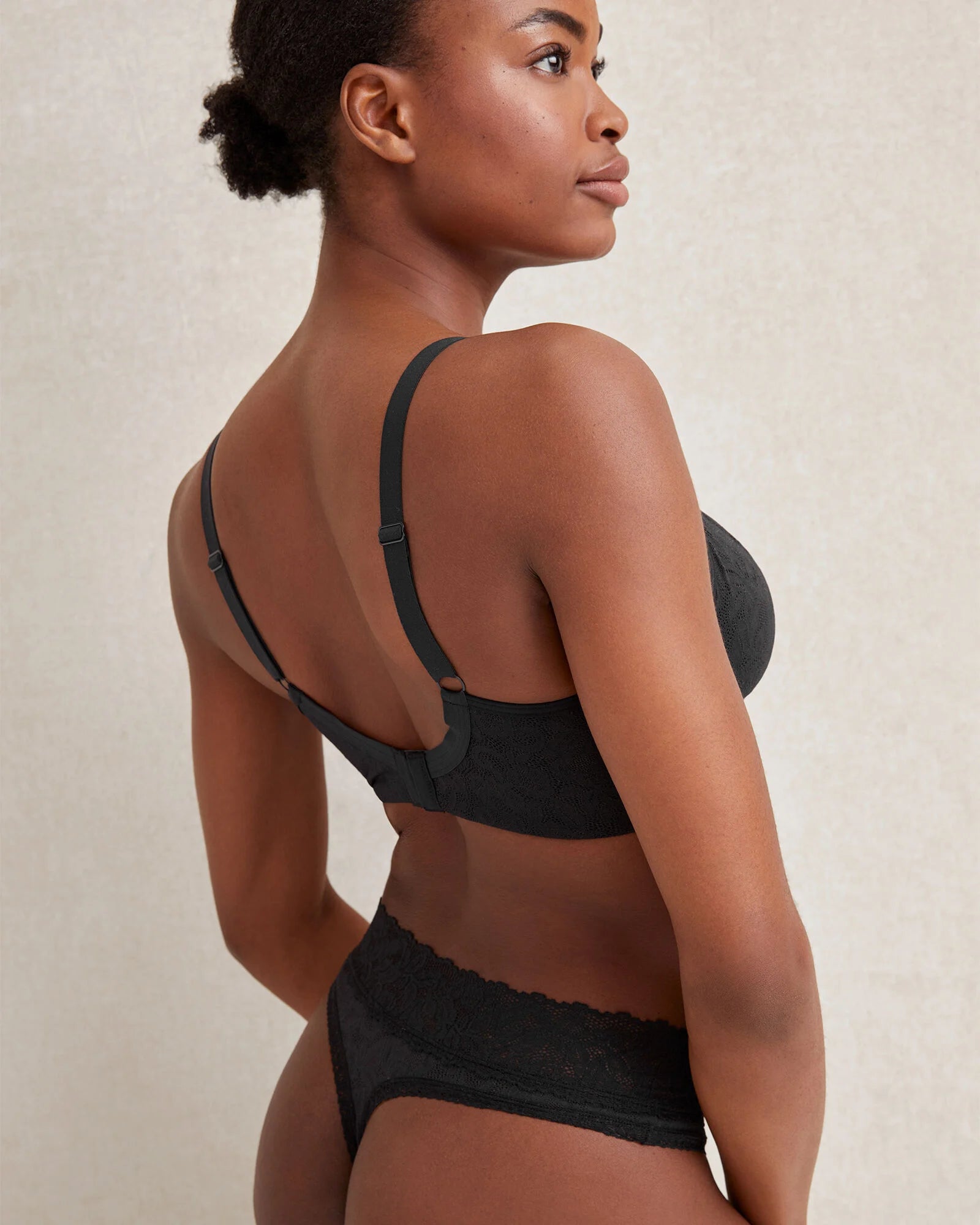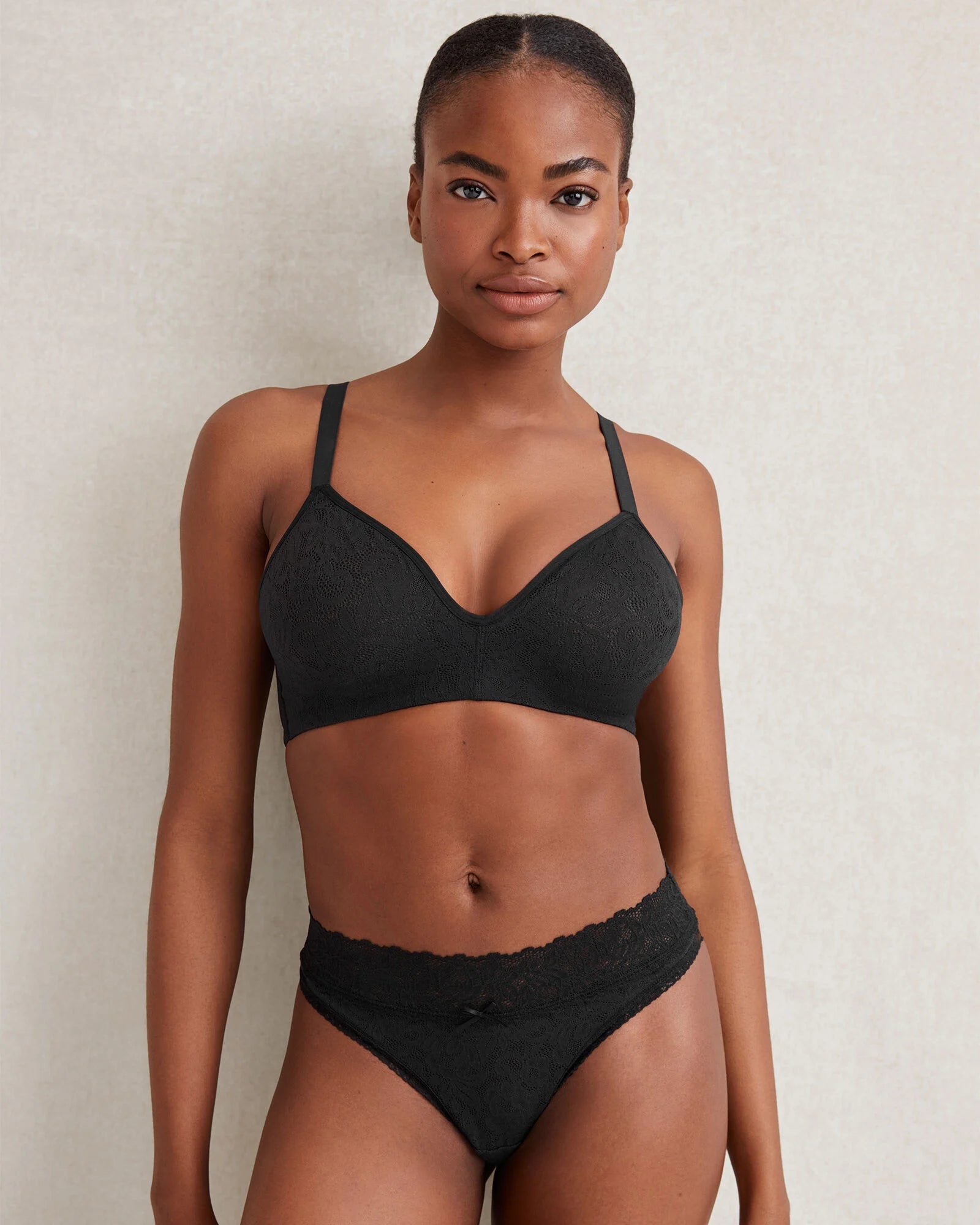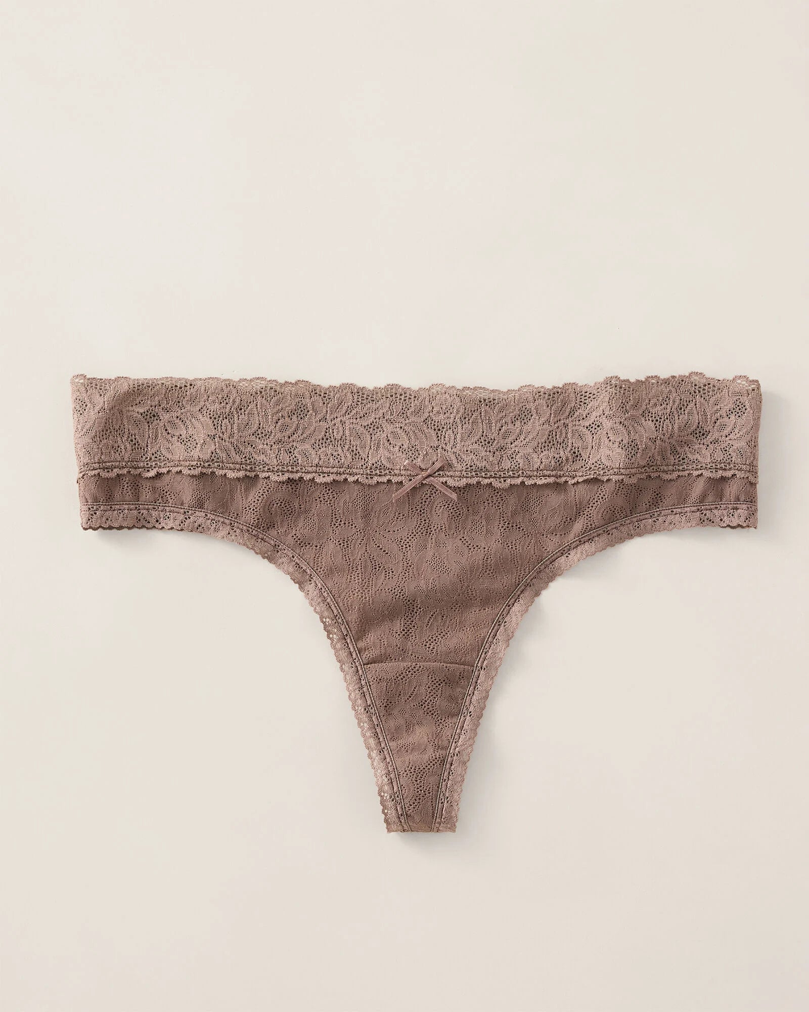 Slip into something pretty. This bare-coverage thong is made from beautifully-soft lace with a comforting, 4-way stretch. It lays flat against the skin for wear with lounge pants, dresses, and beyond.