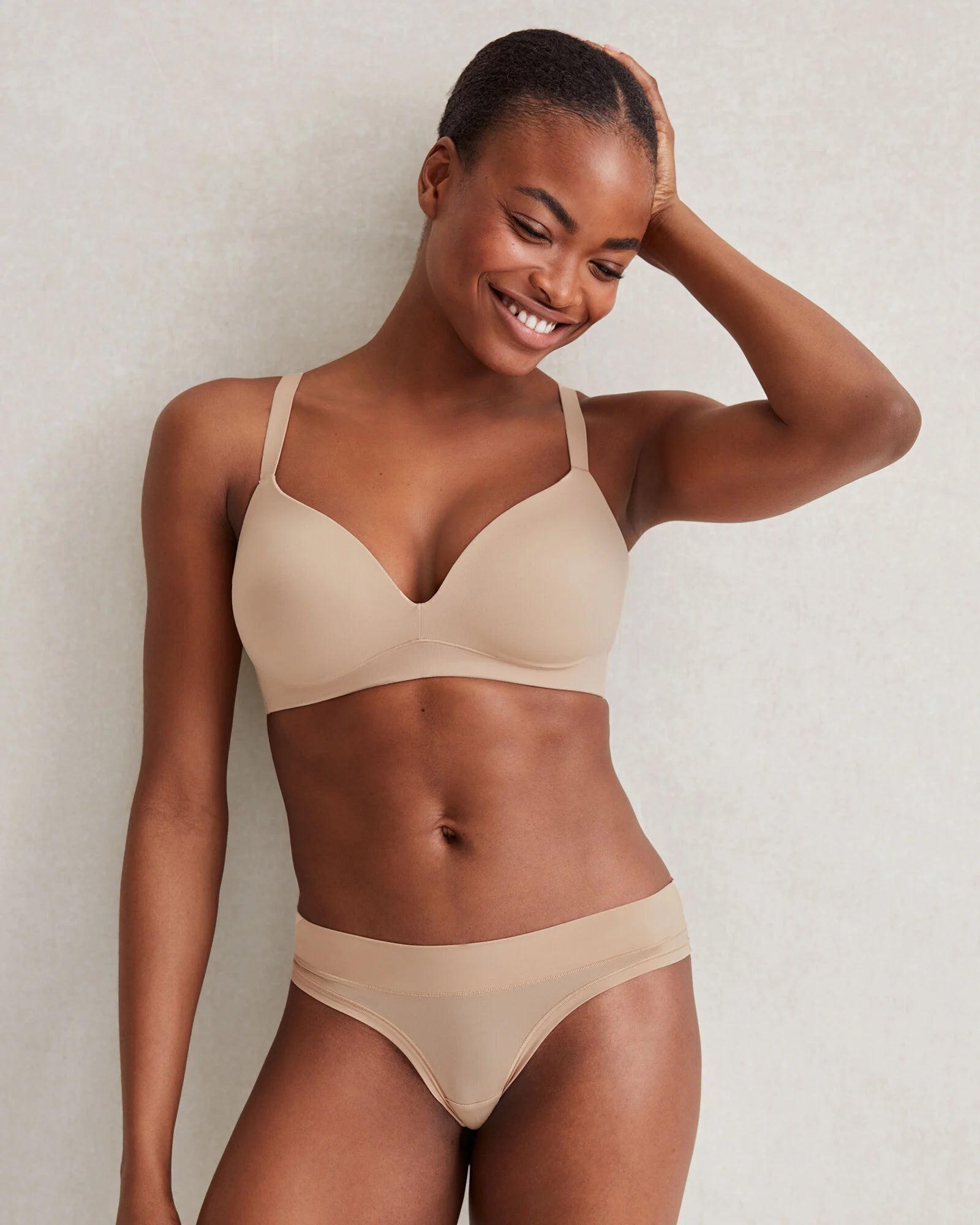 Low coverage, high comfort. This everyday thong is designed with soft brushed fabric and a wide waistband for no binding, digging, or rolling.