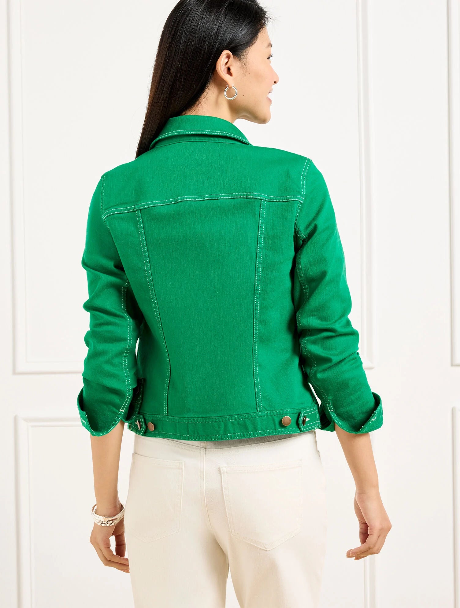 The classic jean jacket. Iconic. Always in style. Designed with a flattering, feminine fit and logo button detail. Complete with button flap pockets at the chest and welt pockets.