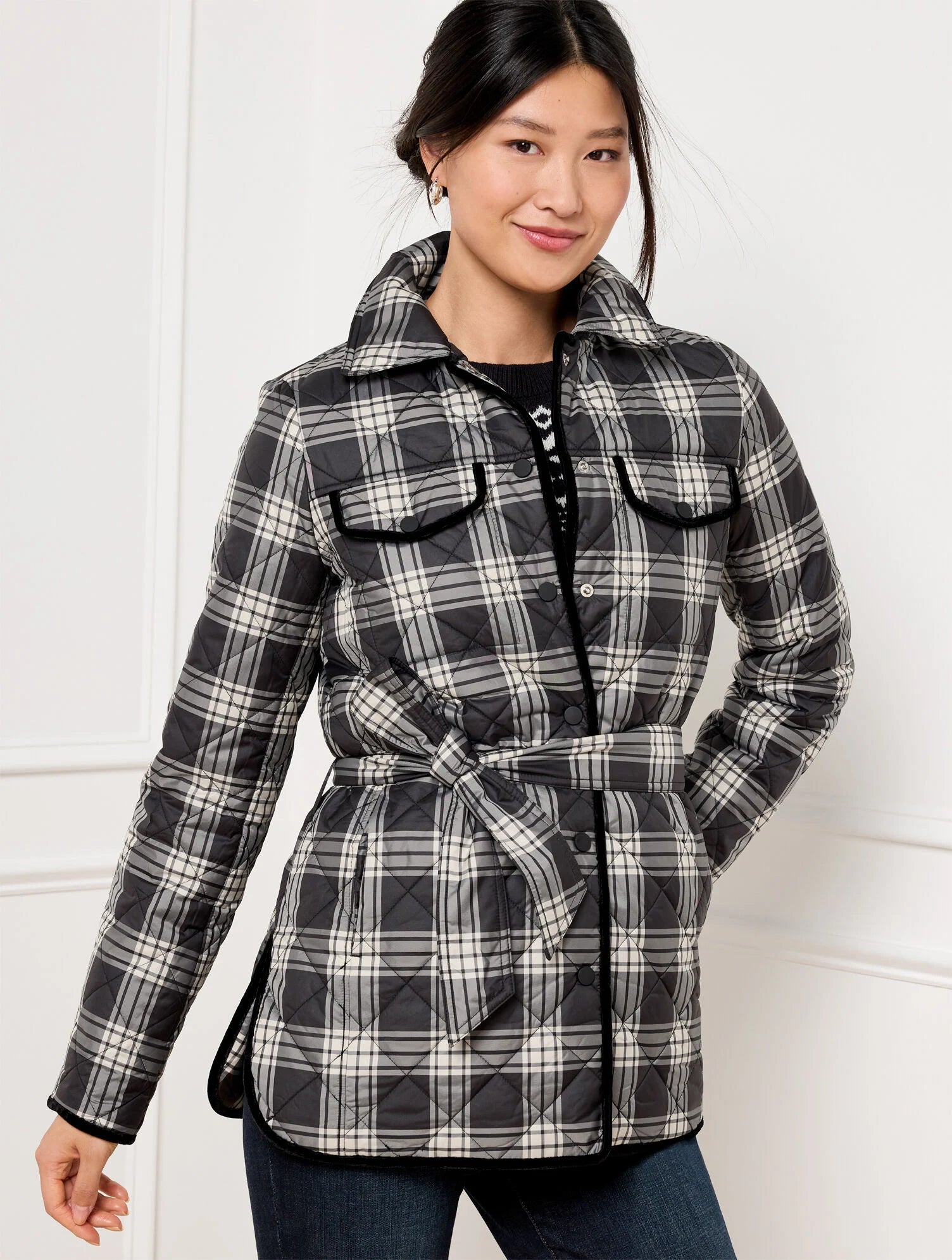 Tie Waist Quilted Shirt Jacket - Traditional Plaid