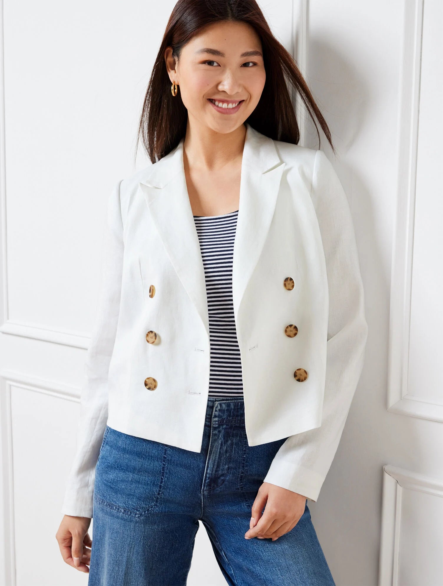 Top off your favorite looks with our perfectly polished jacket. Cut from breathable linen in a cropped silhouette.