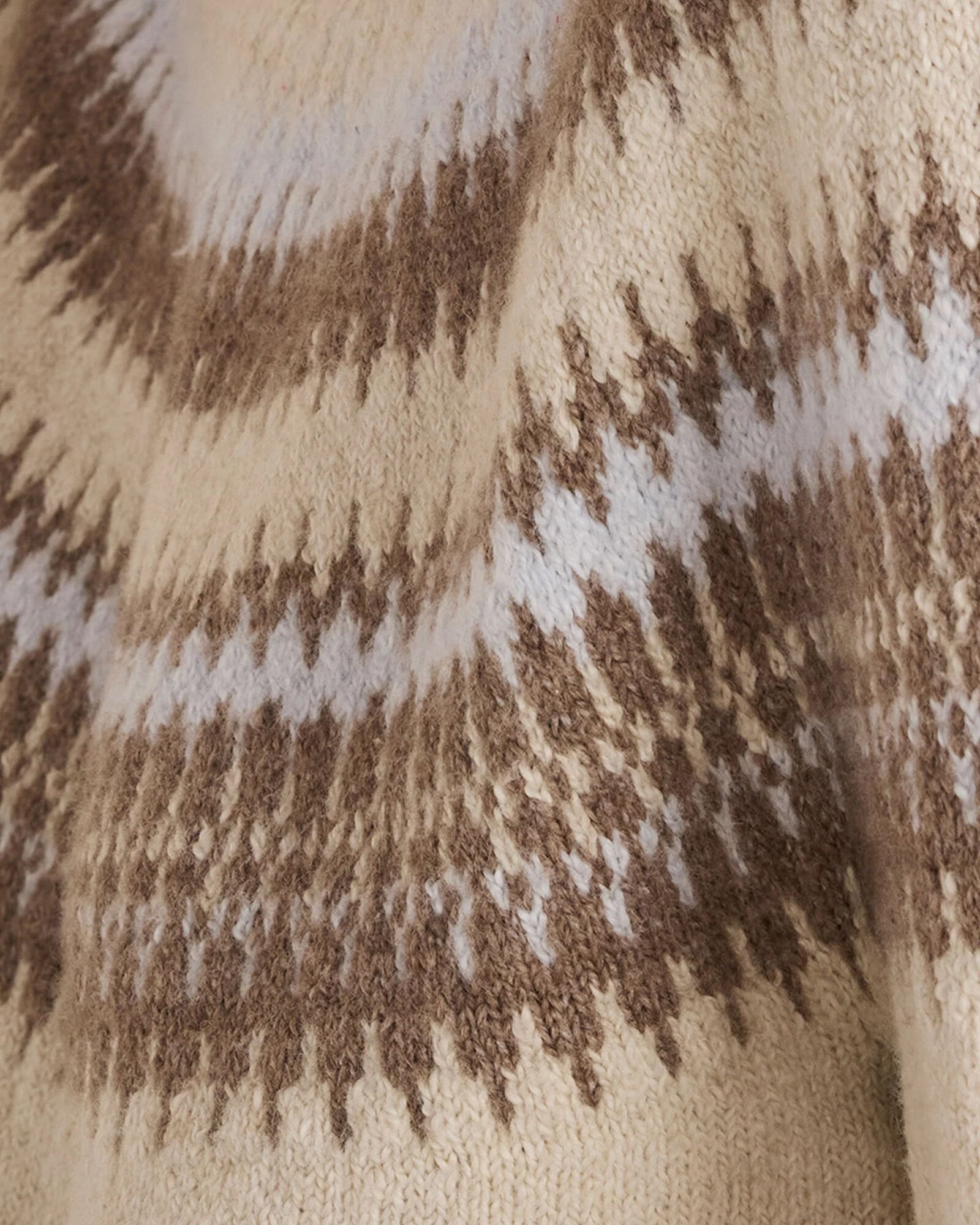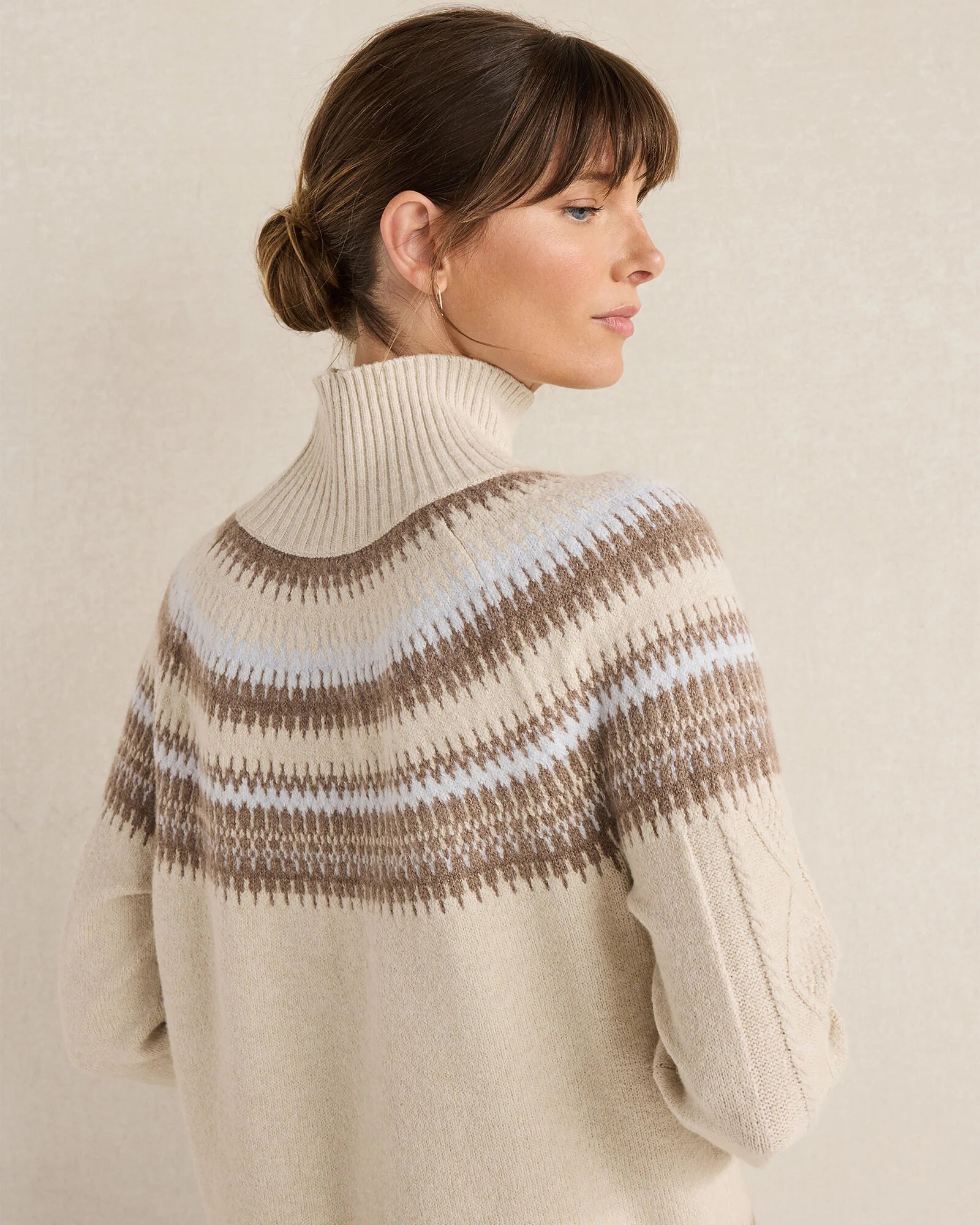 Organic Cotton Blend Fair Isle Cable Mockneck Sweater