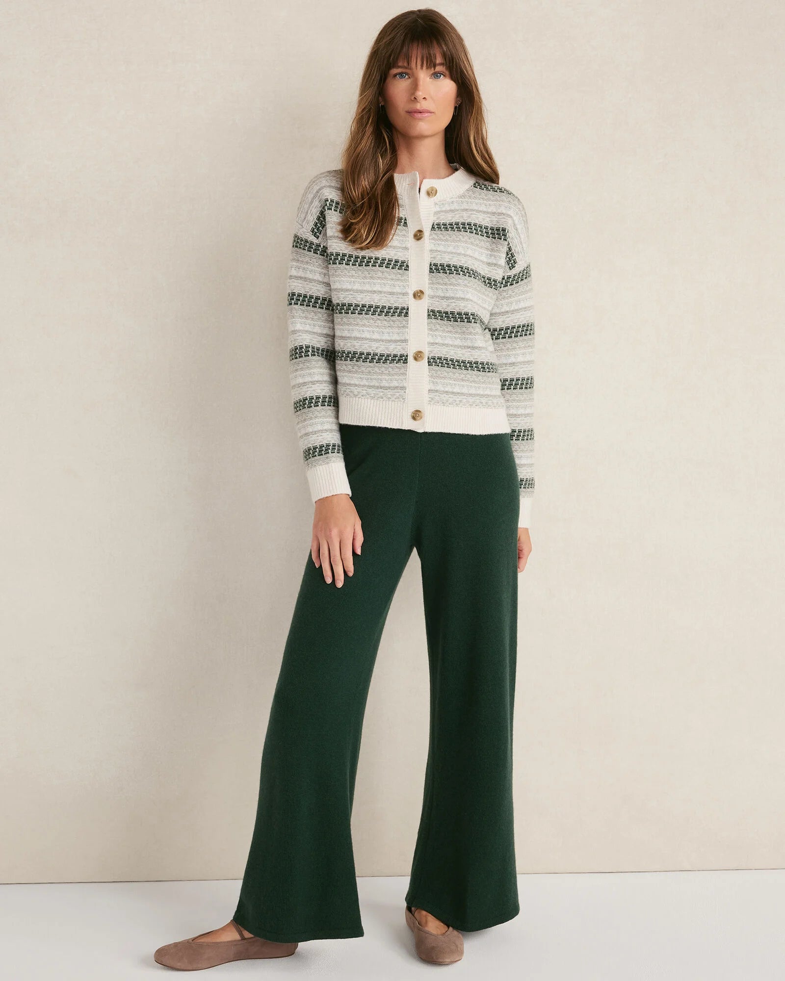 Top off your lounge look with the seasonal charm of this Fair Isle cardigan. Warm, festive and made to relax with you from dawn to dusk. Style it with a lived-in cotton tee and wide leg lounge pants.