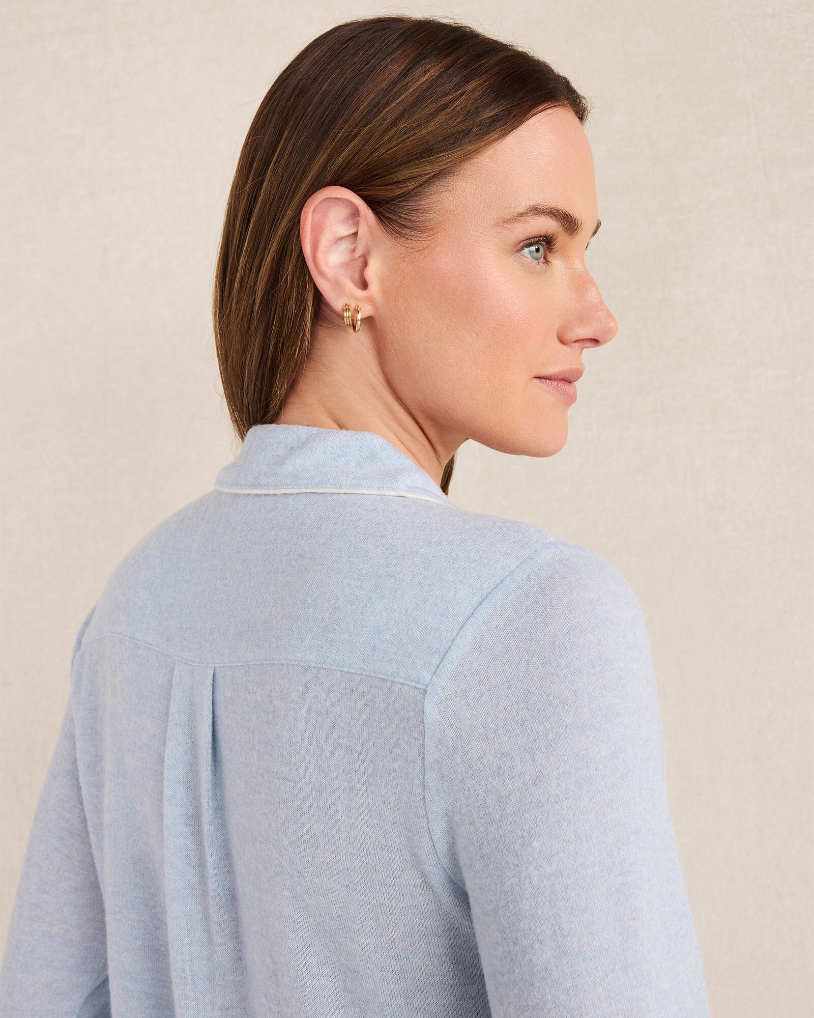 When it's time to tuck in for the night, reach for this effortless marled knit pajama top. Peaceful to the touch and even better with the matching pajama pants.