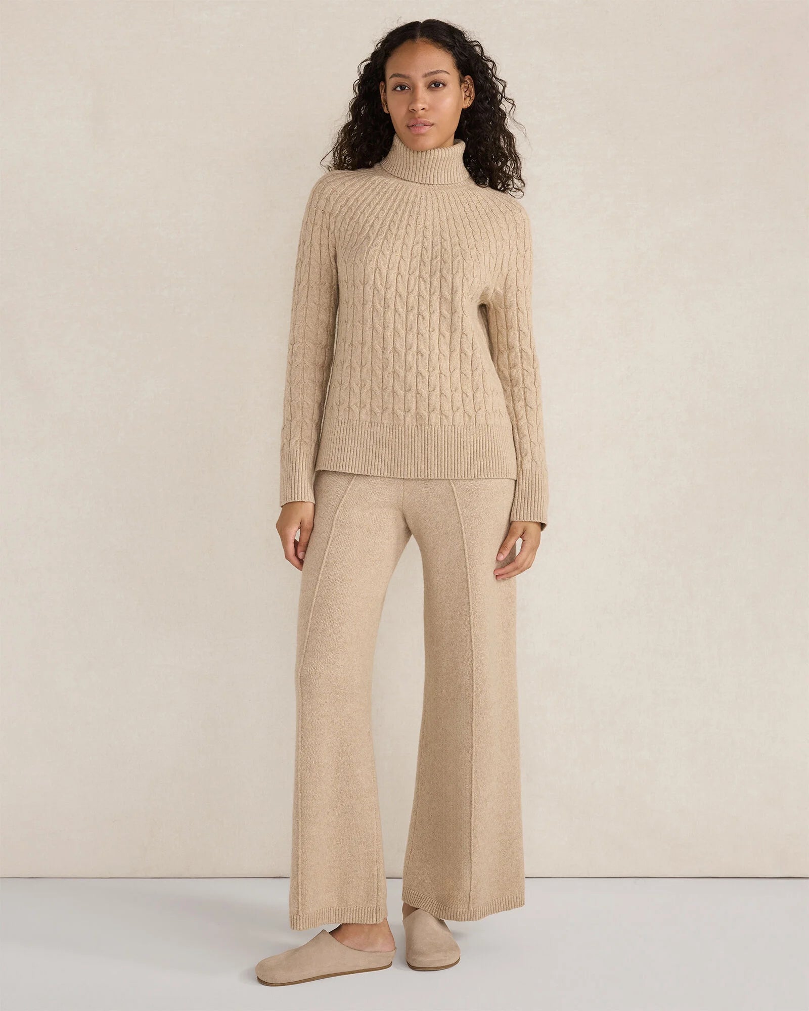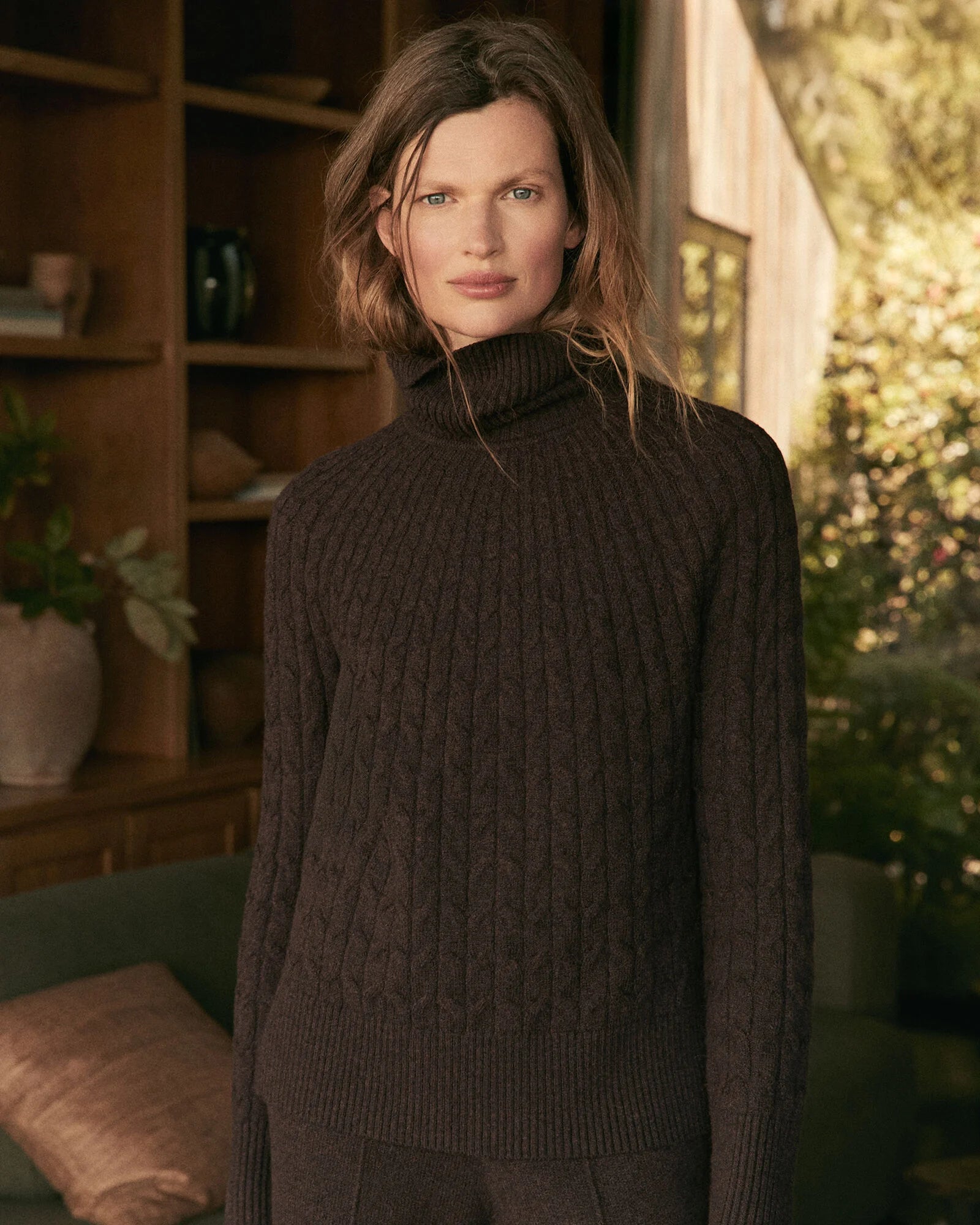 The classic cable stitch meets modern gradient detailing in this turtleneck sweater. Made from a super soft organic cotton blend, with raglan sleeves and a slightly relaxed fit for extra comfort. For easy styling, wear it with the matching pants in the same color.