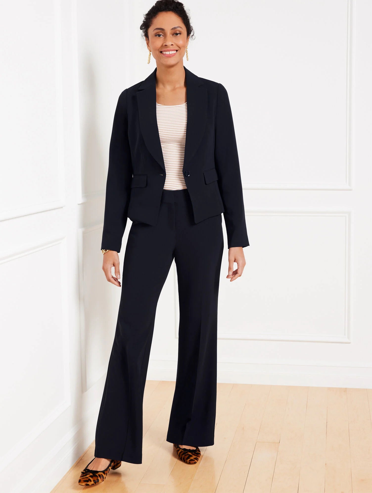 Effortlessly chic. Soft and breathable. Supremely comfortable. With a luster and feel that resembles silk. Machine washable and perfect for travel. Tailored charm meets on-trend details. Our fashion-forward flare leg pants are a wardrobe must-have. Easy-to-pack, easy care. Simple elegance in lightweight fabric with a sophisticated fit.