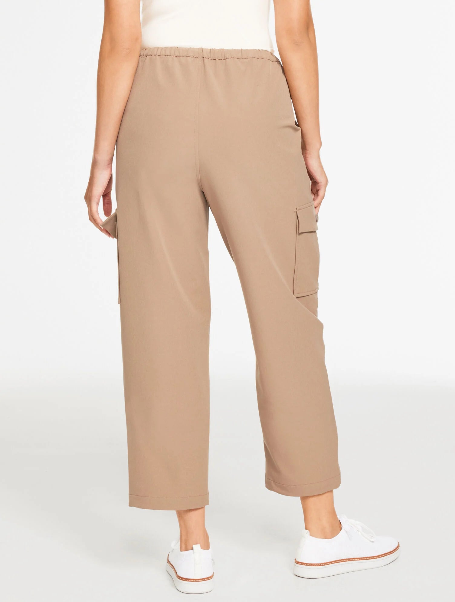 Our utility-inspired pants are made for active days or weekend plans. They feature a comfortable bungee cord waist, front pockets and a cargo pocket at the side with a snap button closure. Adjustable bungee cord at the hem lets you create the perfect jogger or straight leg fit. Travel-friendly and just right for everyday.