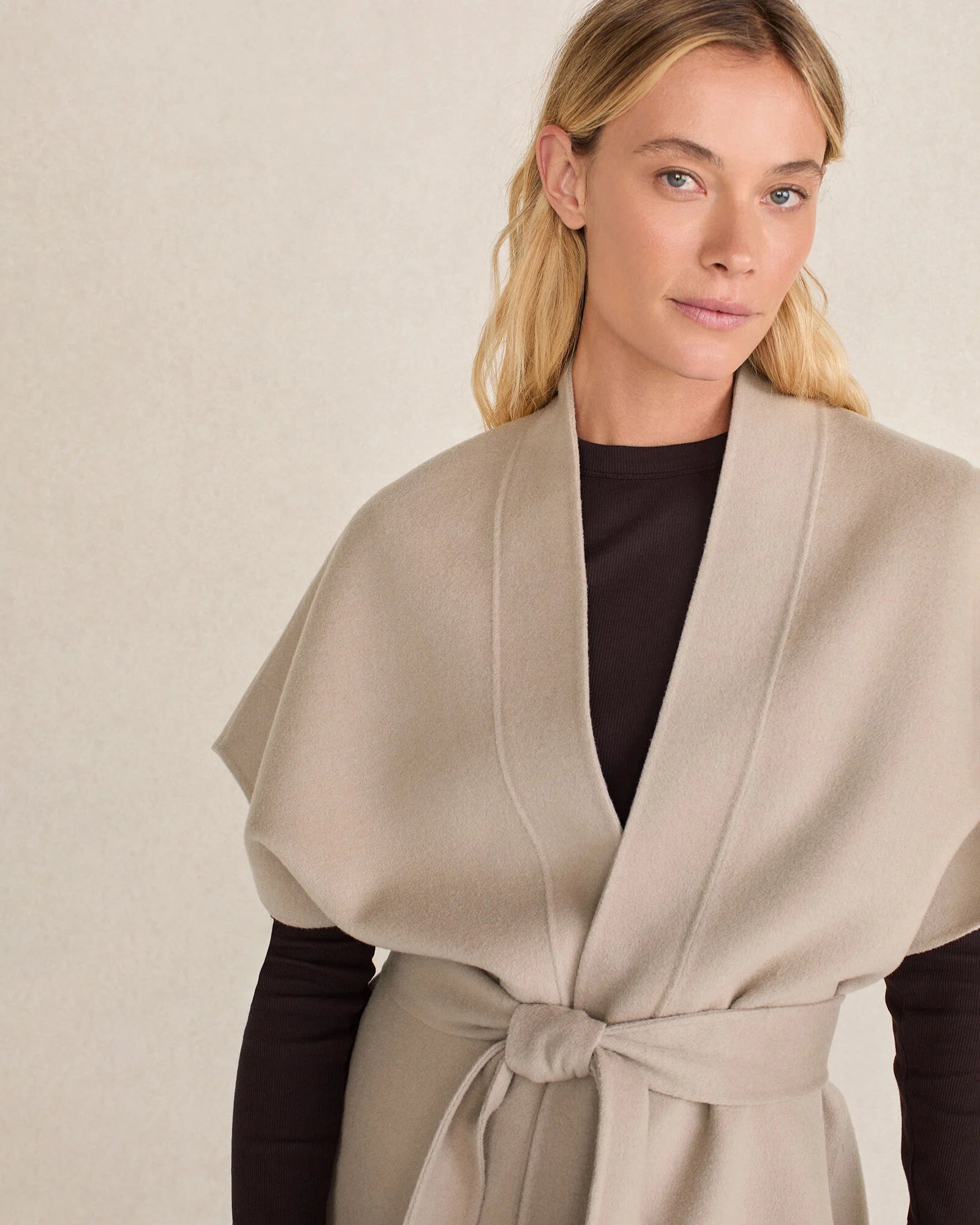 Add this transitional, easy-to-throw-on layer to your coat closet this season. Made from a deliciously soft wool blend, this tie-front vest can be worn open or closed. Style it over your Essential Long Sleeve Tee or a crewneck sweater.