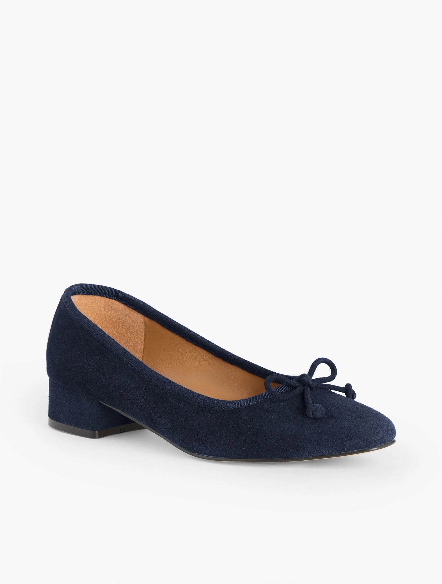 Perfect for your desk-to-dinner looks. A low-block heel brings easy comfort to our elegant Vanessa Pumps. Crafted from luxe suede with a pretty bow at the vamp. You’ll love the memory foam footbed and heel and arch padding for extra comfort and support. Flexible outsole for improved stability.