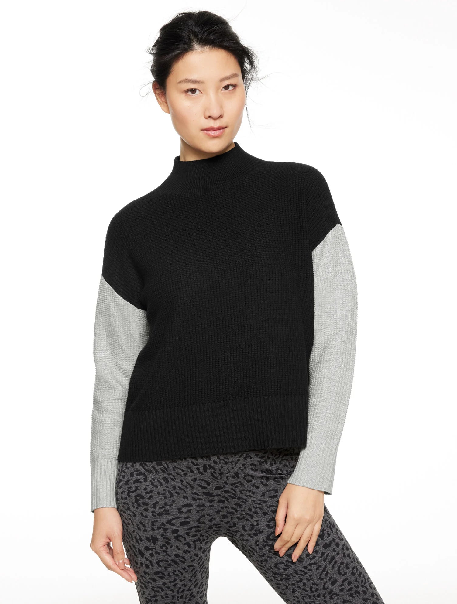 Waffle Knit Mockneck Colorblock Sweater