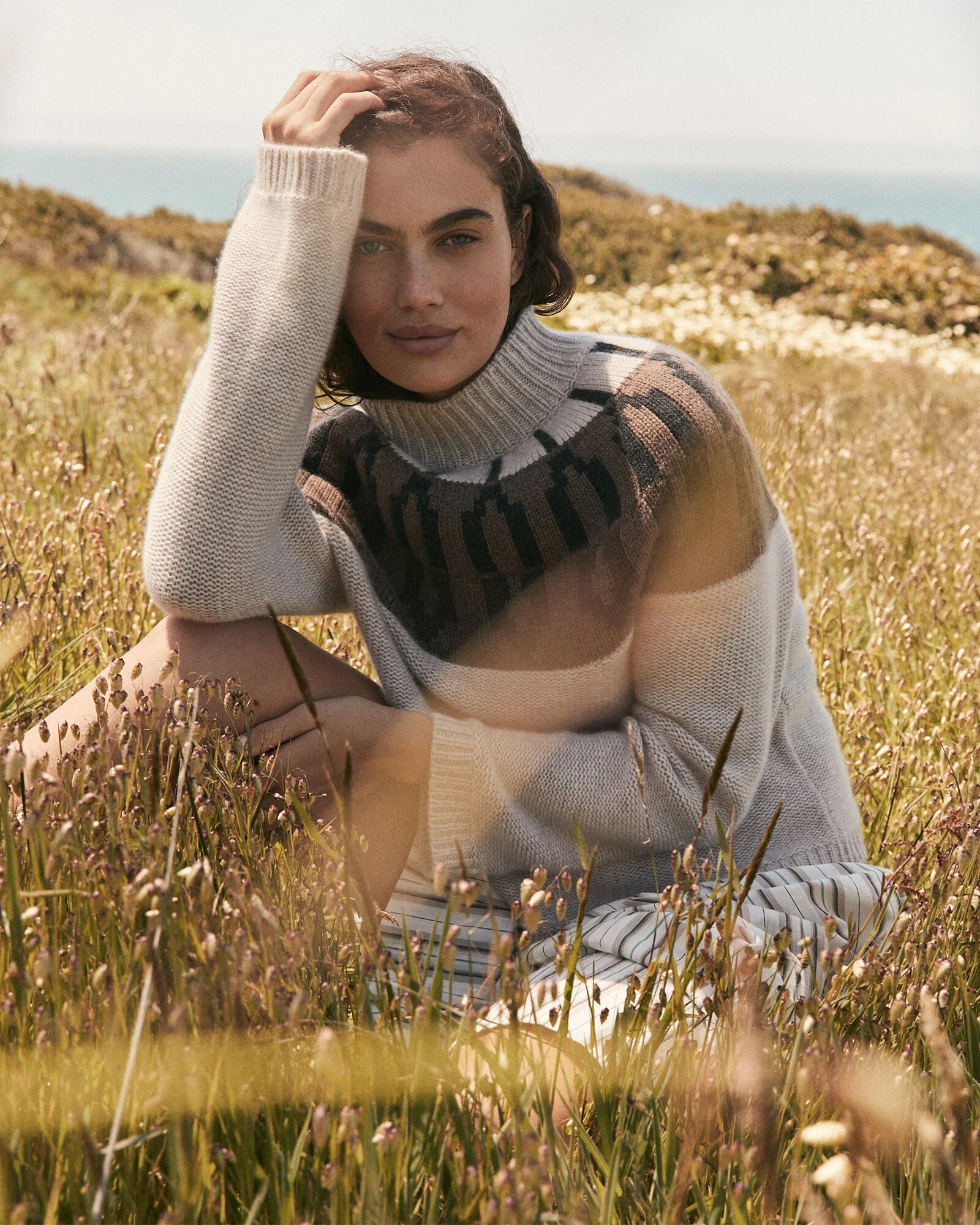 A timeless Fair Isle pattern adorns this cozy mock neck sweater. Crafted from luxuriously soft 100% cashmere and finished with raglan sleeves and a slightly cropped fit.