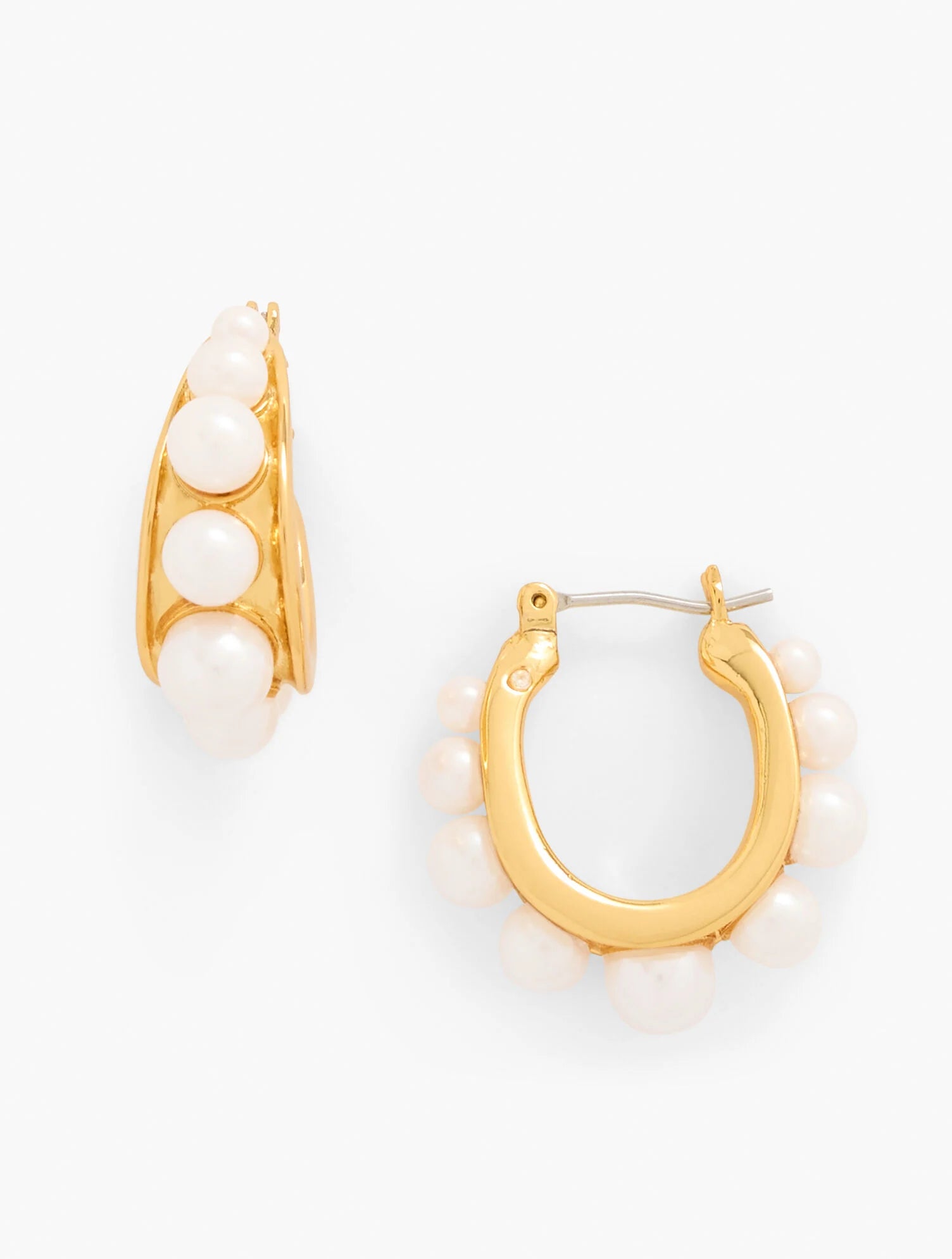 Glow from every angle with the elegant pearls on our must-have hoop earrings. The perfect touch of glam.
